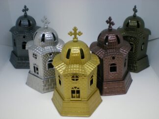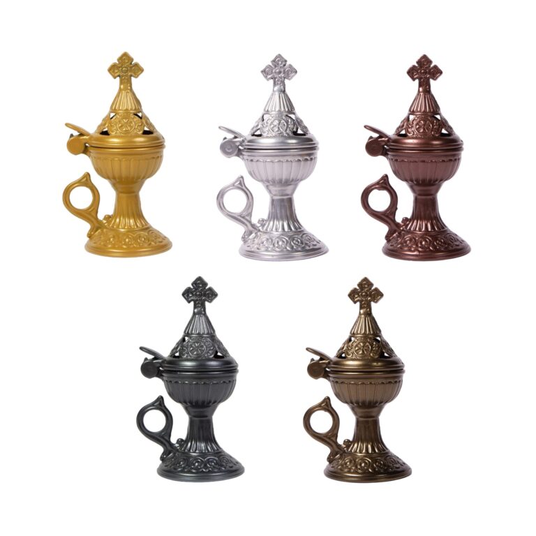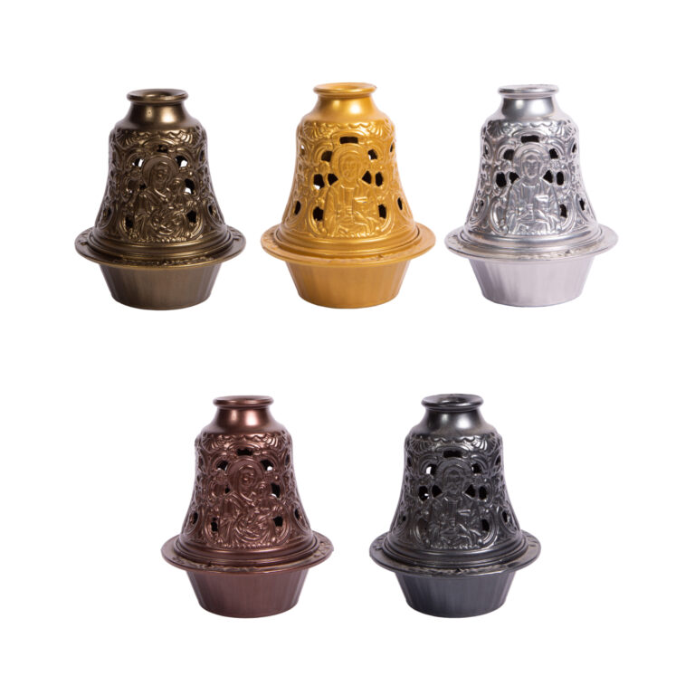 Το λιβανιστήρι έχει διαστάσεις (ΔxΥ): 8,5 x 8 εκ. Διαθέσιμα χρώματα: – ασημί – γκρι – μπρονζέ – χρυσό –