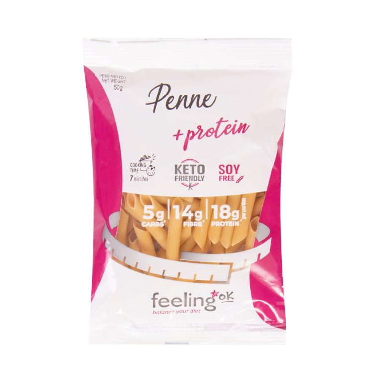 Οι πρωτεϊνικές πέννες Feeling OK Penne αποτελούν μια ιδανική επιλογή για όσους ακολουθούν διατροφή χαμηλών υδατανθράκων ή πλούσια σε πρωτεΐνη.