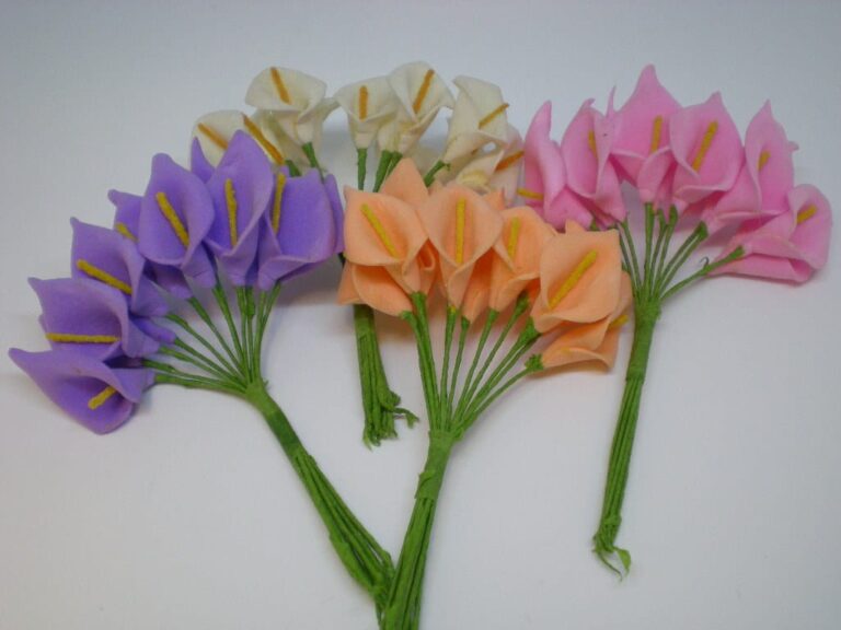 Διακοσμητικά μπουκέτα από κρινάκια, διαθέσιμα σε δύο χρώματα: ροζ και λευκό. Οι διαστάσεις του κάθε μπουκέτου είναι περίπου (ΠxΥ): 8