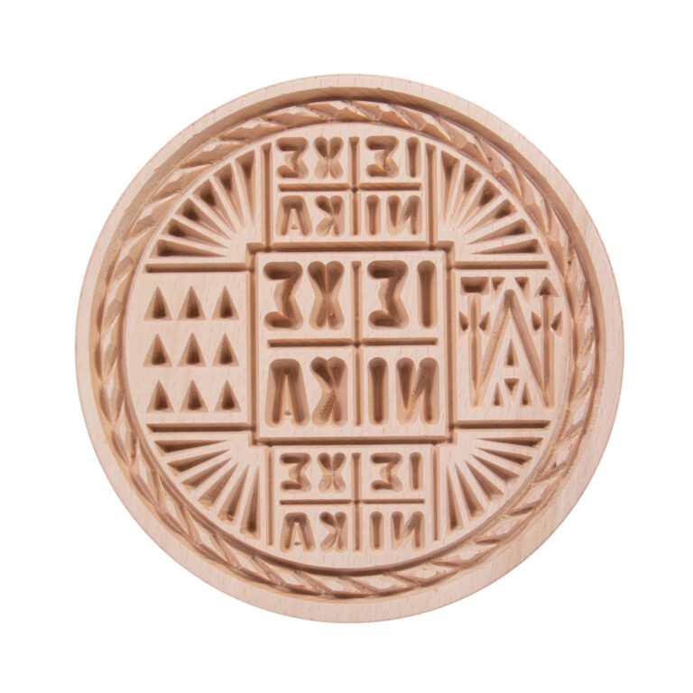 Εξαιρετικής ποιότητας σφραγίδες, για σωστή χάραξη του πρόσφορου. Η μία όψη είναι κοινή (ΙΣ|ΧΣ|ΝΙ|ΚΑ), με διάμετρο 8 εκ. και η