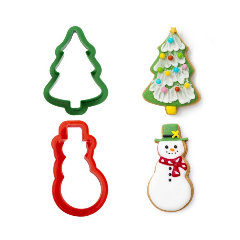 Το σετ περιλαμβάνει 2 κουπάτ με διαστάσεις (ΜxΠxΥ): – Χριστουγεννιάτικο δέντρο (8 x 8,5 x 2 εκ.) – χιονάνθρωπος (5,5