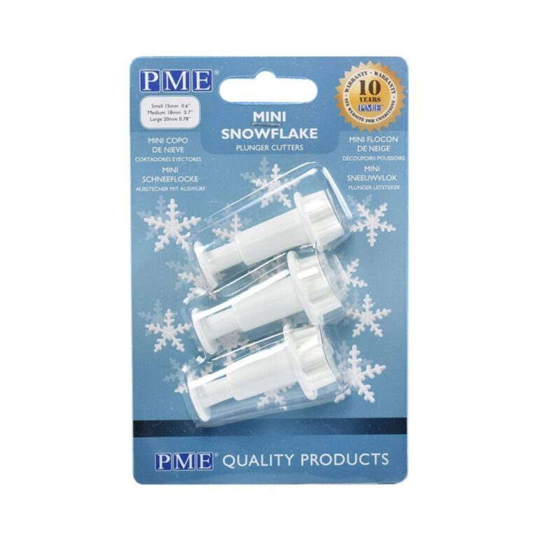 Η συσκευασία περιέχει 3 σετ κουπάτ σε σχήμα χιονονιφάδας με διάμετρο περίπου: – 3,5, 7,5 και 10 εκ. – 6,
