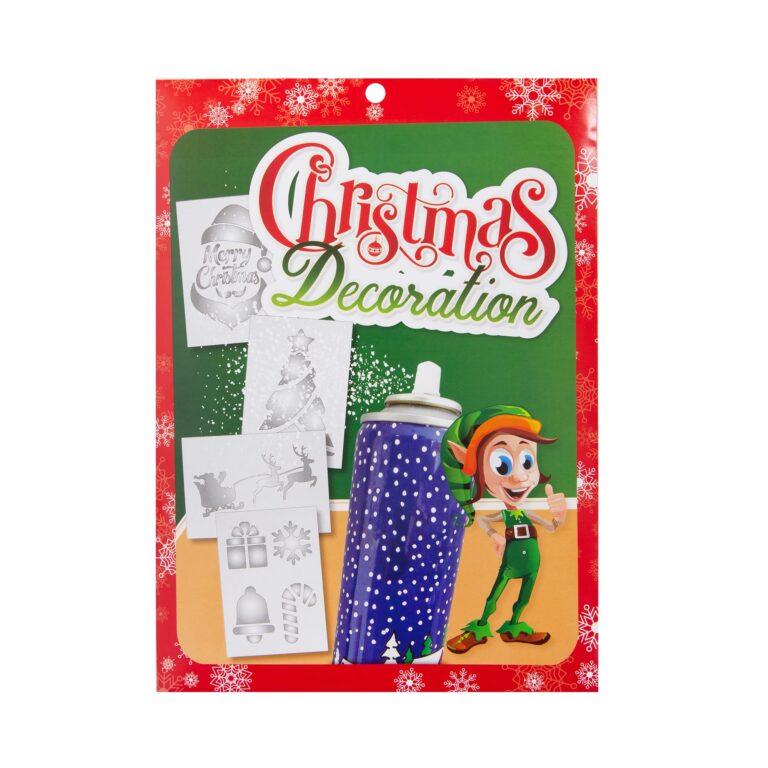 Περιέχεται 1 πατρόν (στένσιλ) με διάμετρο 25 εκ. και τη φράση “Merry Christmas”. Περιμετρικά έχει διάφορα χριστουγεννιάτικα σχέδια. Ιδανικό για