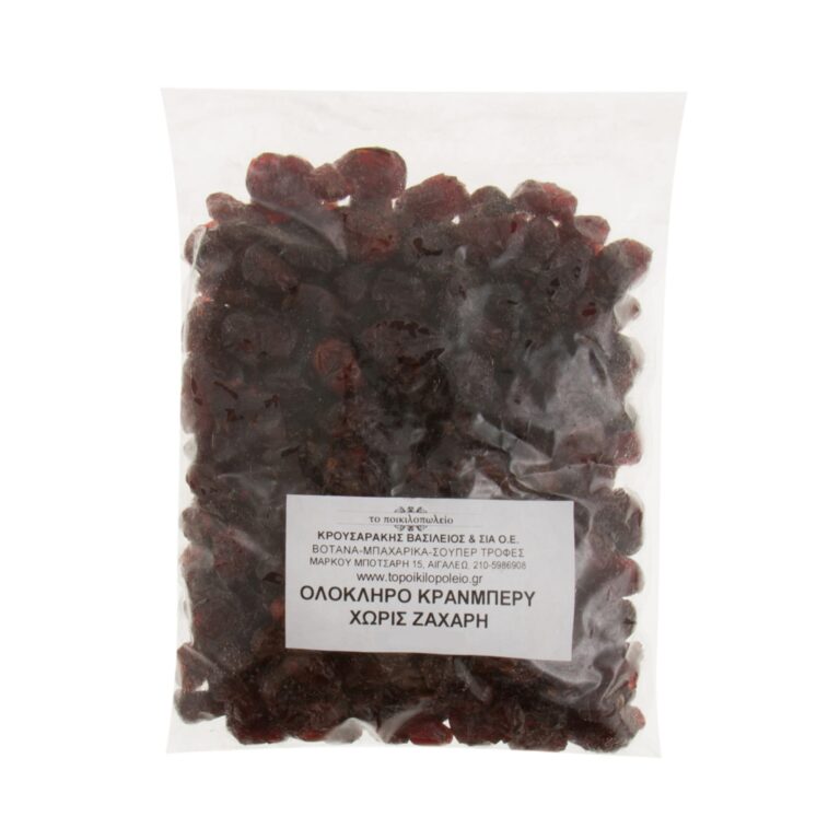 Ολόκληρος καρπός κράνμπερι (cranberry) αποξηραμένο χωρίς ζάχαρη