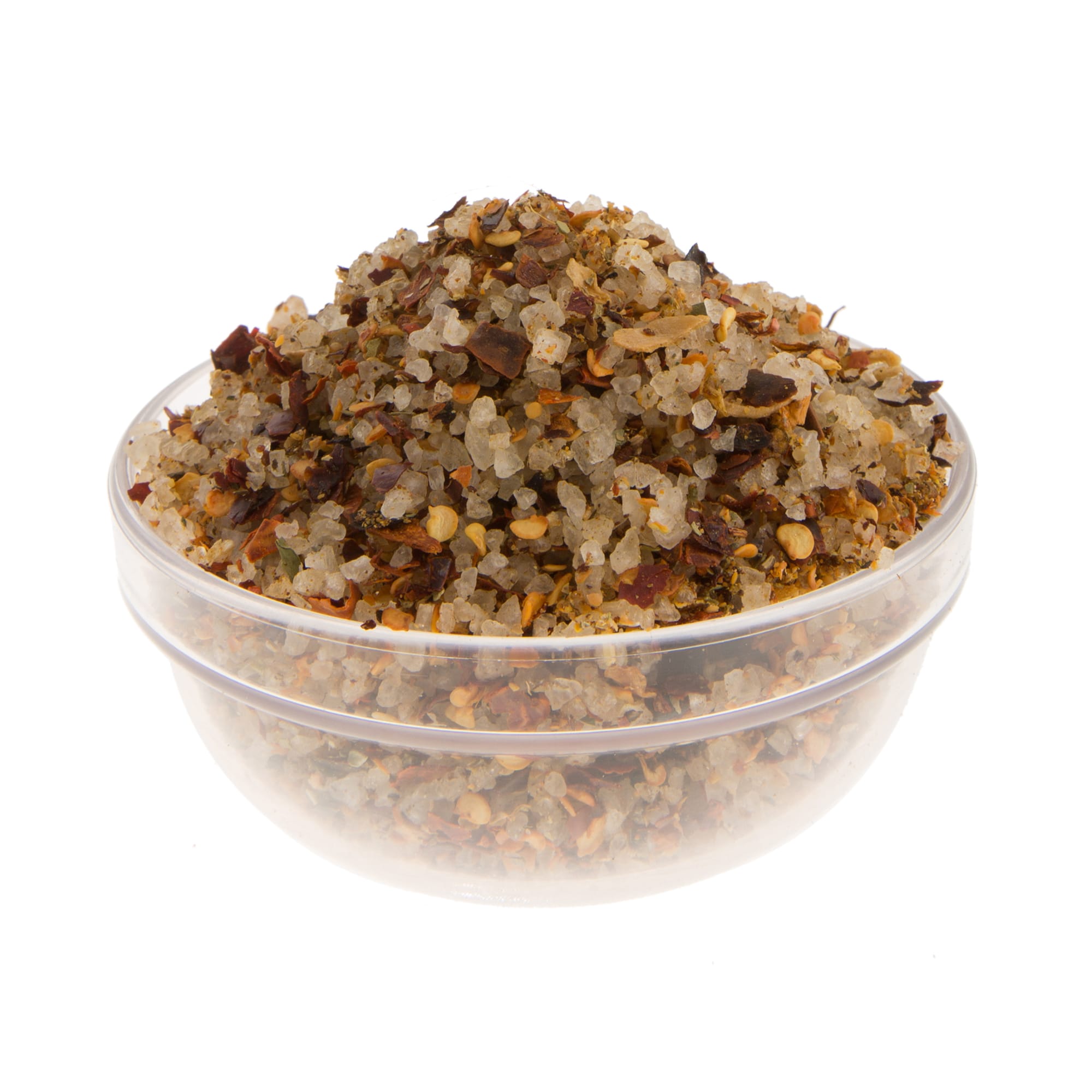 Συστατικά: κρυσταλλικό αλάτι από την Έρημο Καλαχάρι χονδρόκκοκο, με ποικιλία μπαχαρικών για μπάρμπεκιου (BBQ).