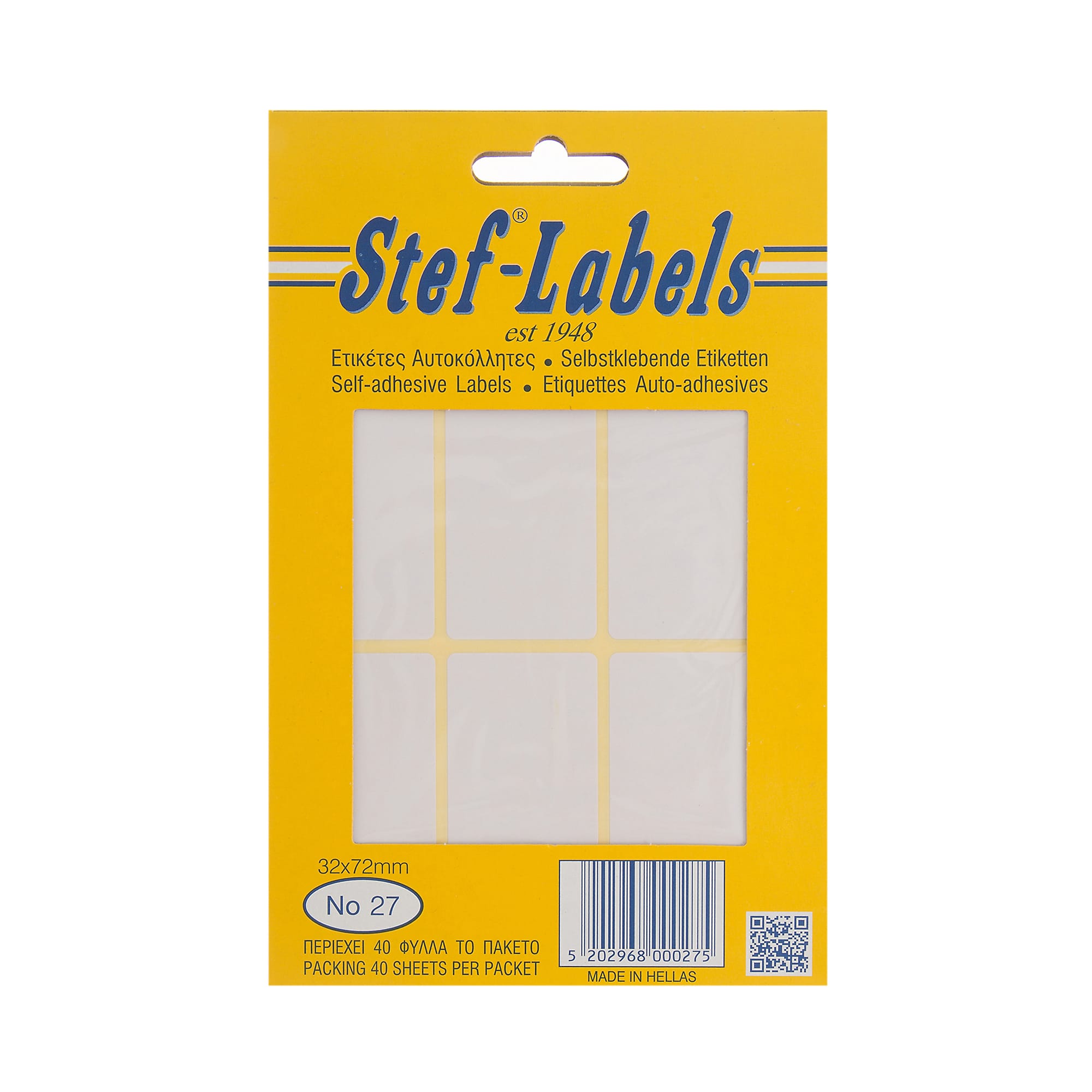 Αυτοκόλλητες ετικέτες Stef-Labels No. 27 6-ορθογώνιες 32x72mm 40 φύλλα