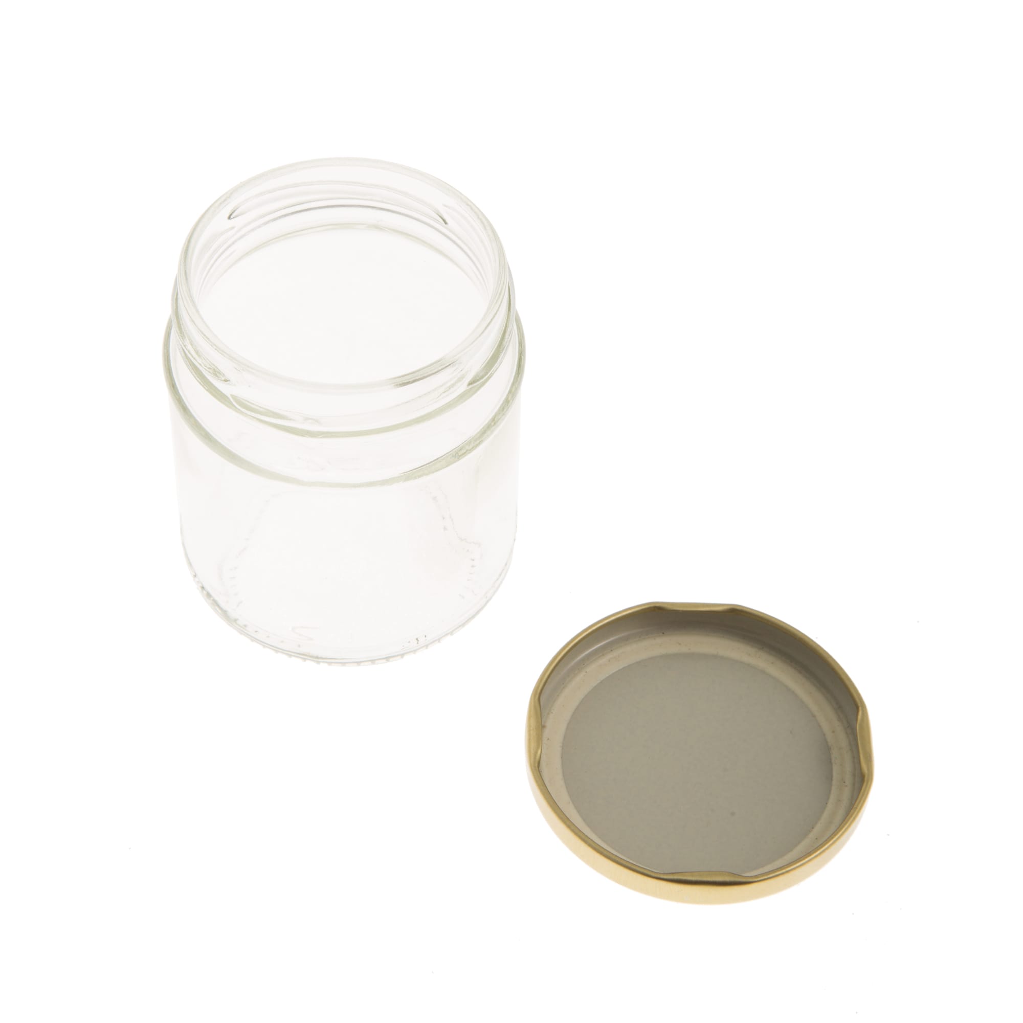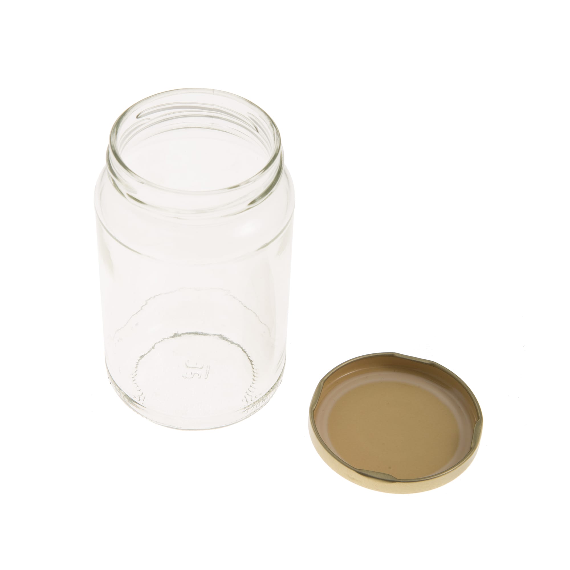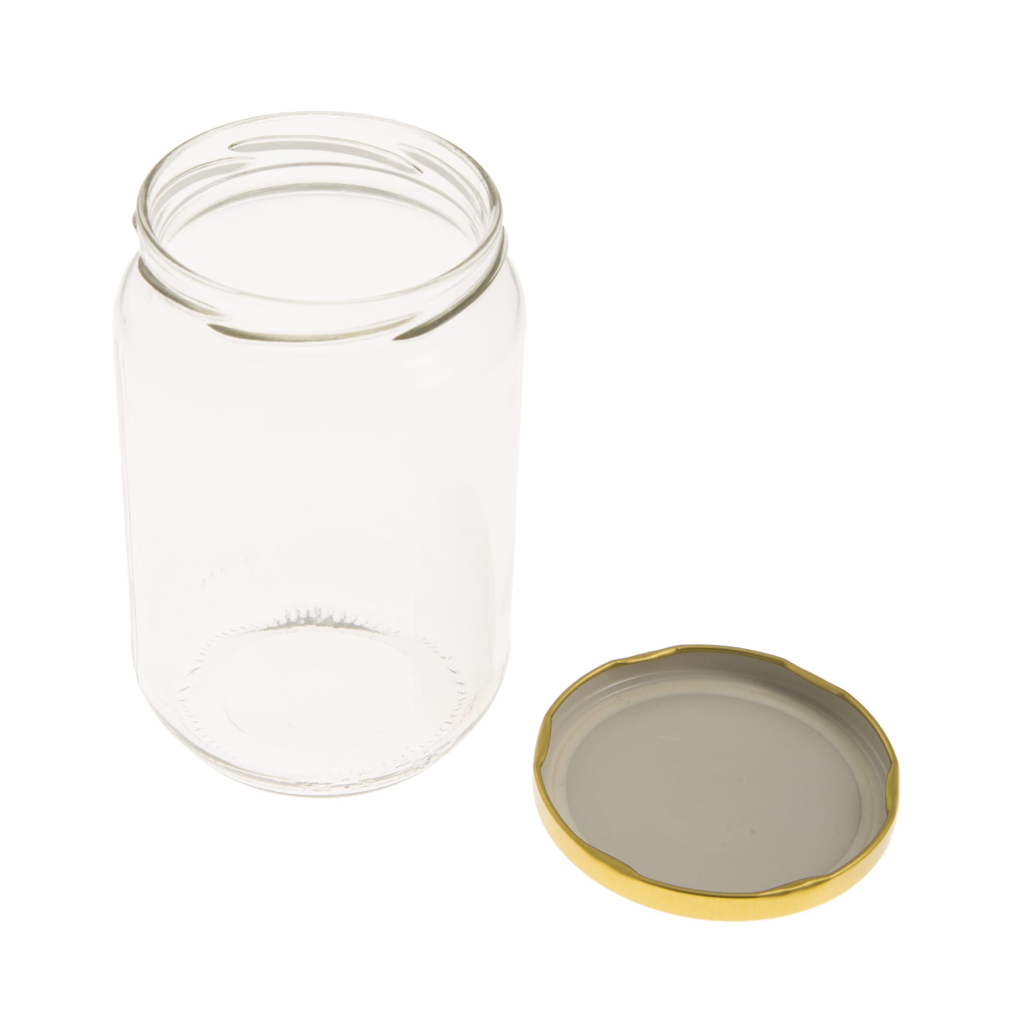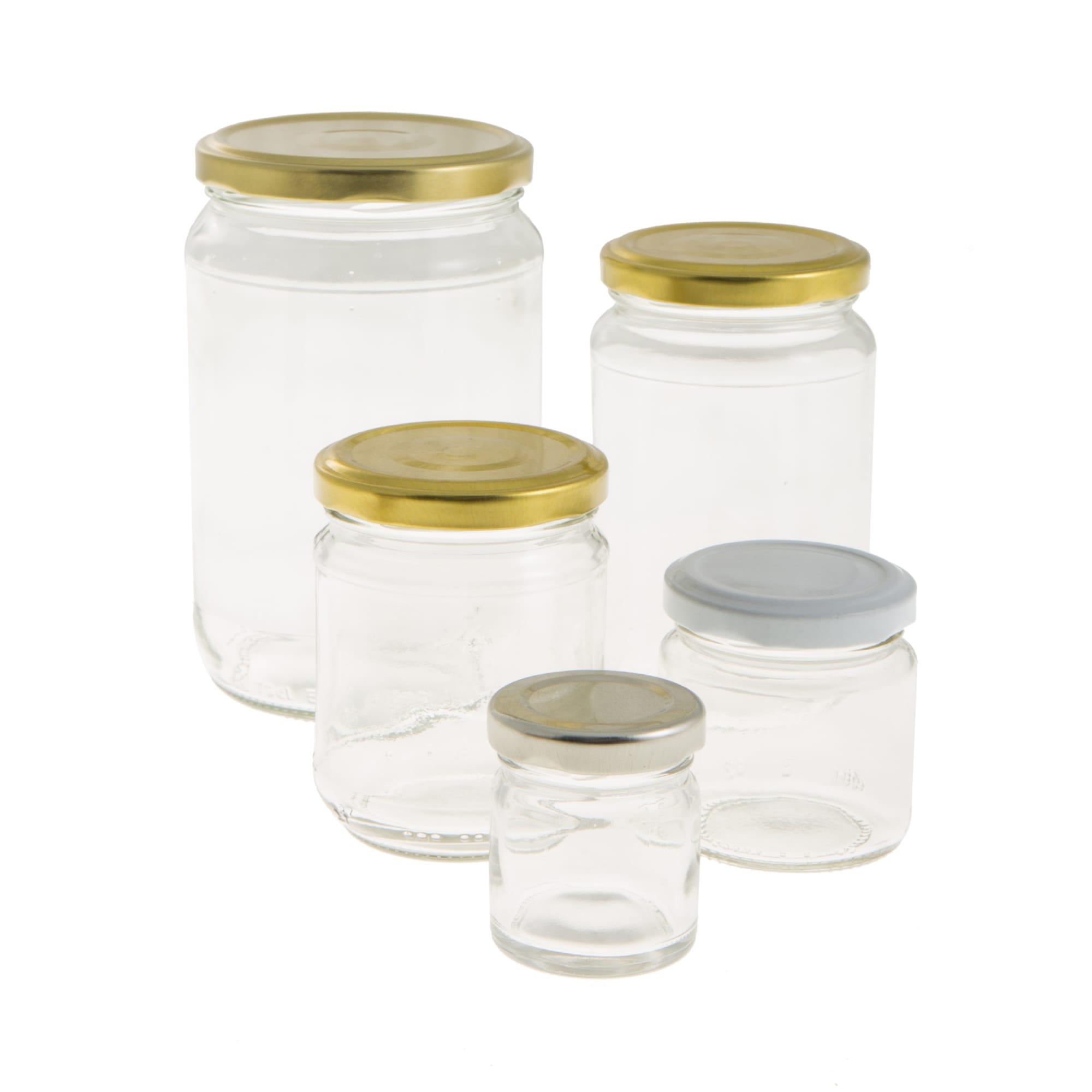 Γυάλινα βάζα με μεταλλικό, βιδωτό καπάκι, κατάλληλα για αποθήκευση τροφίμων.