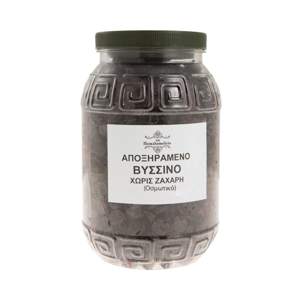 Το αποξηραμένο–ωσμωτικό βύσσινο χωρίς προσθήκη ζάχαρης προσφέρει έντονη, φυσική γεύση και χαρακτηριστική οξύτητα. Η διαδικασία ωσμωτικής αφυδάτωσης διατηρεί τη ζουμερή υφή και τα θρεπτικά συστατικά του καρπού.