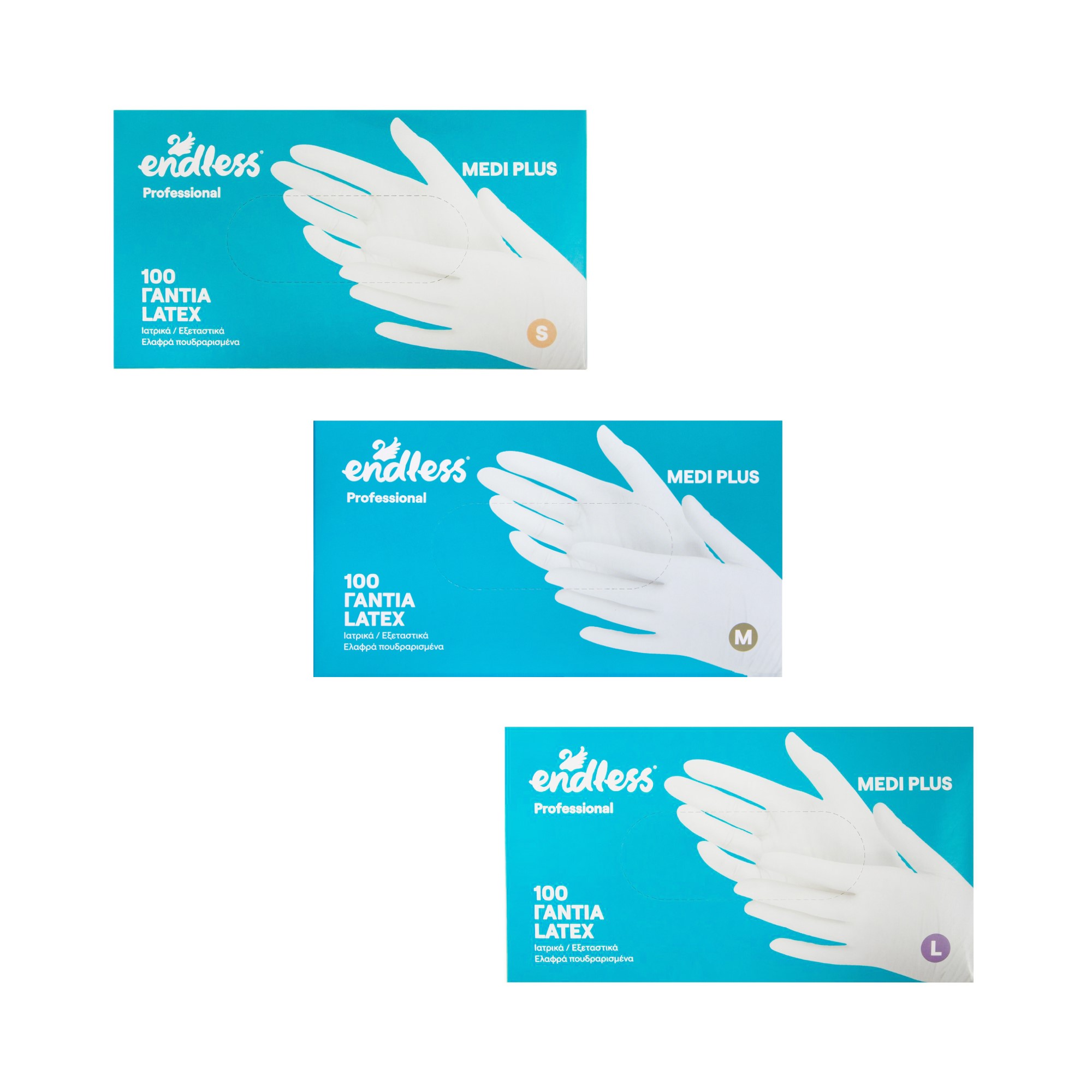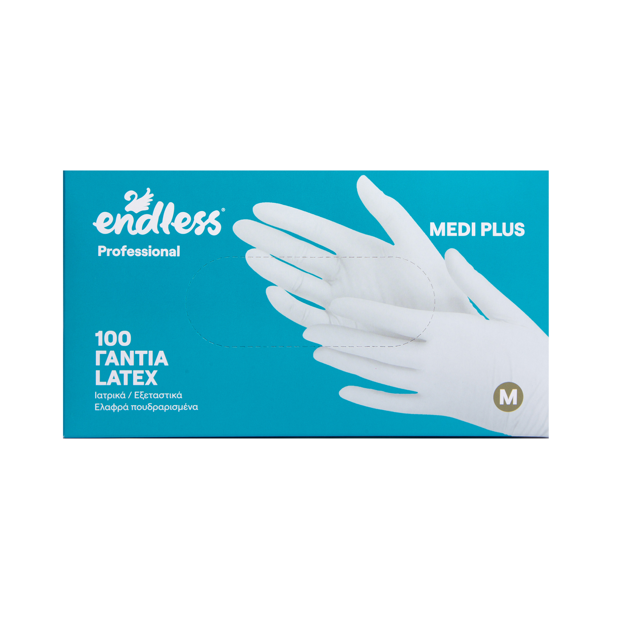 Γάντια μίας χρήσης latex Endless Professional Medi Plus μη αποστειρωμένα ελαφρά πουδραρισμένα κουτί 100 τεμ.