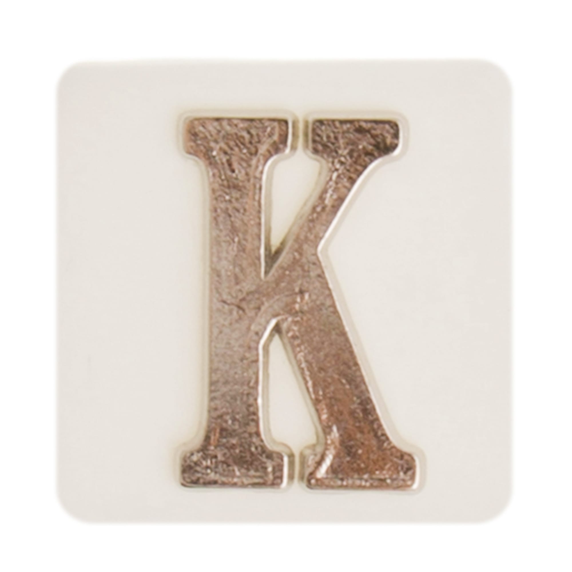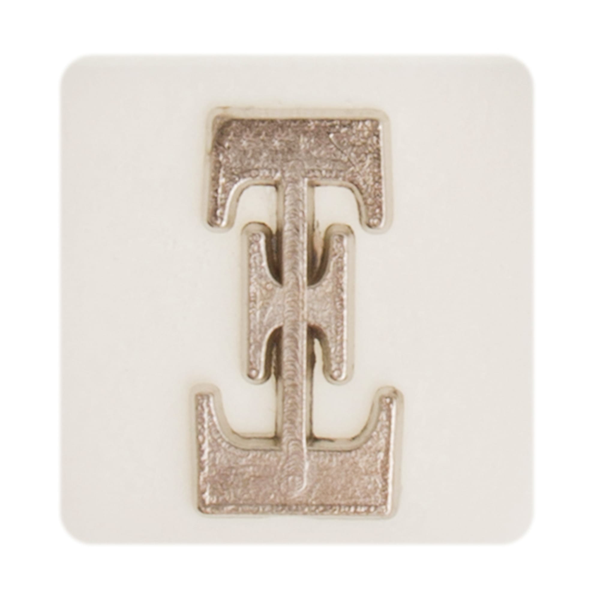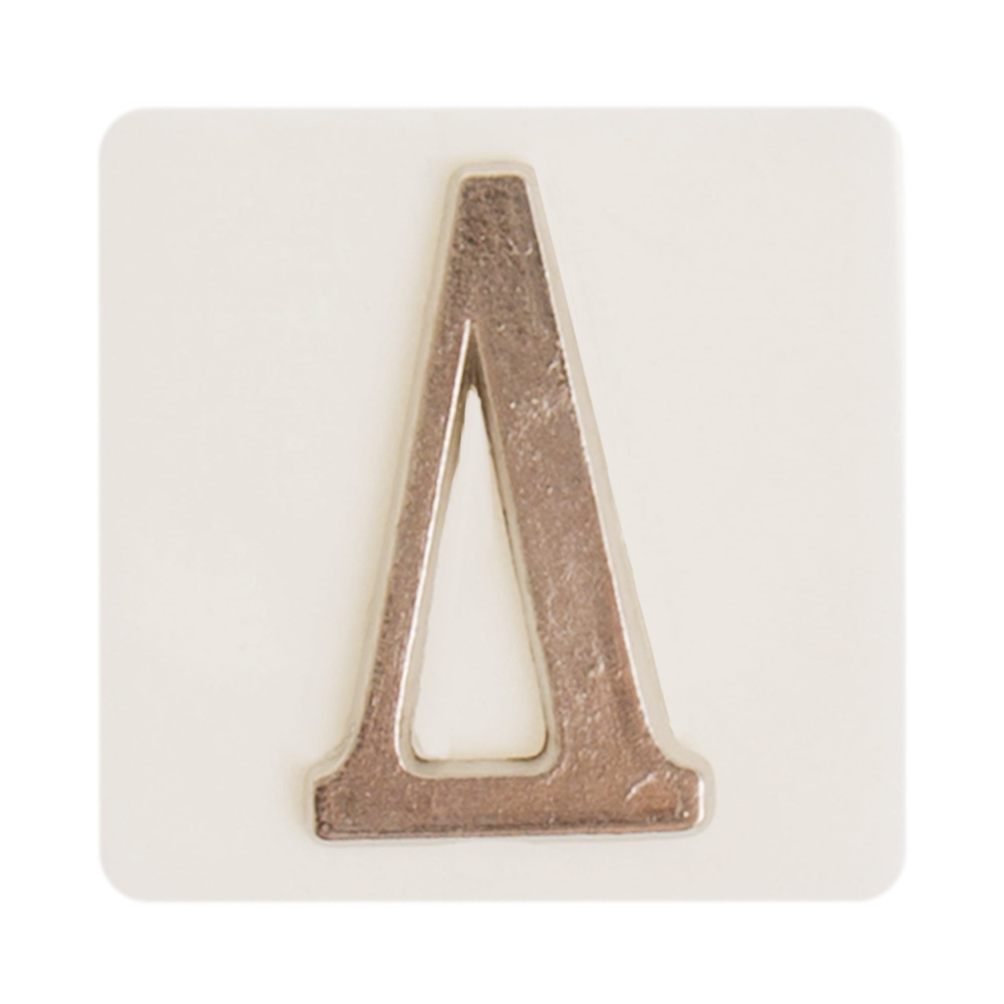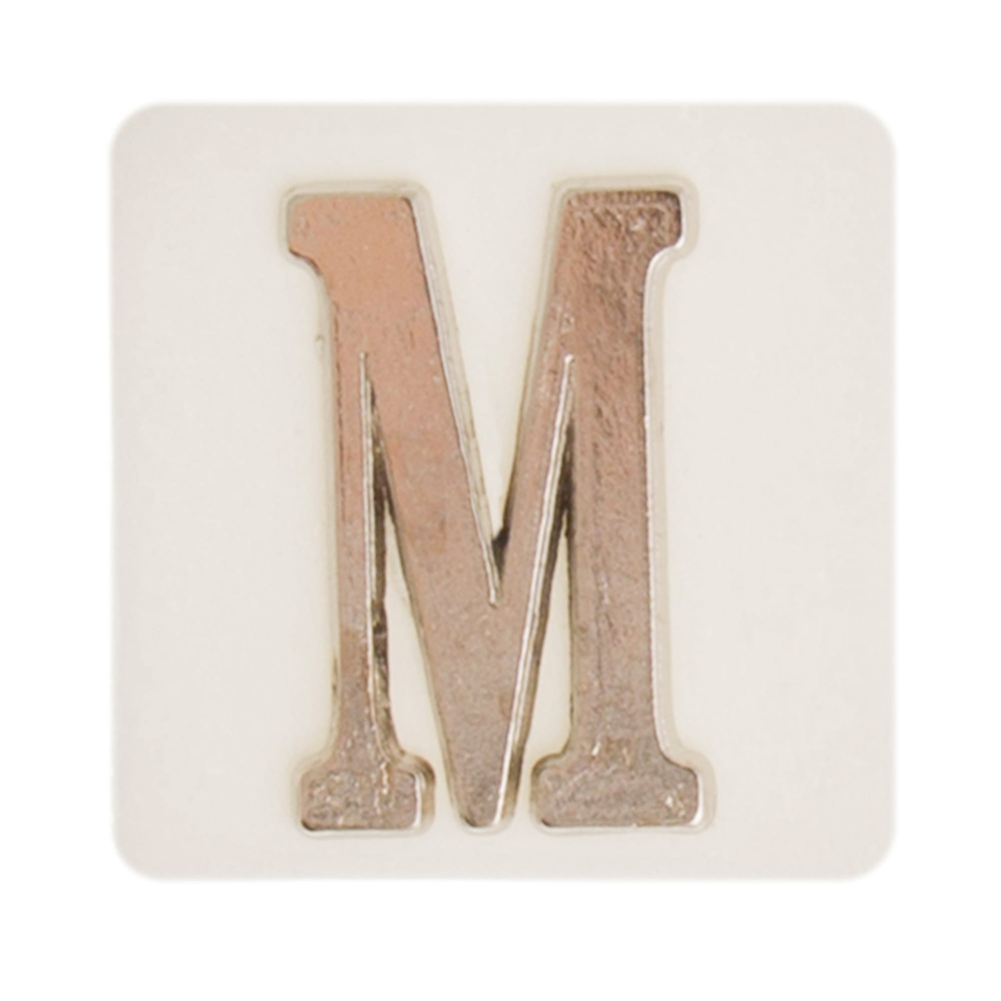 Τα γράμματα είναι μεταλλικά πάνω σε λευκή ζαχαρόπαστα, διαστάσεων 4 x 4 εκ.