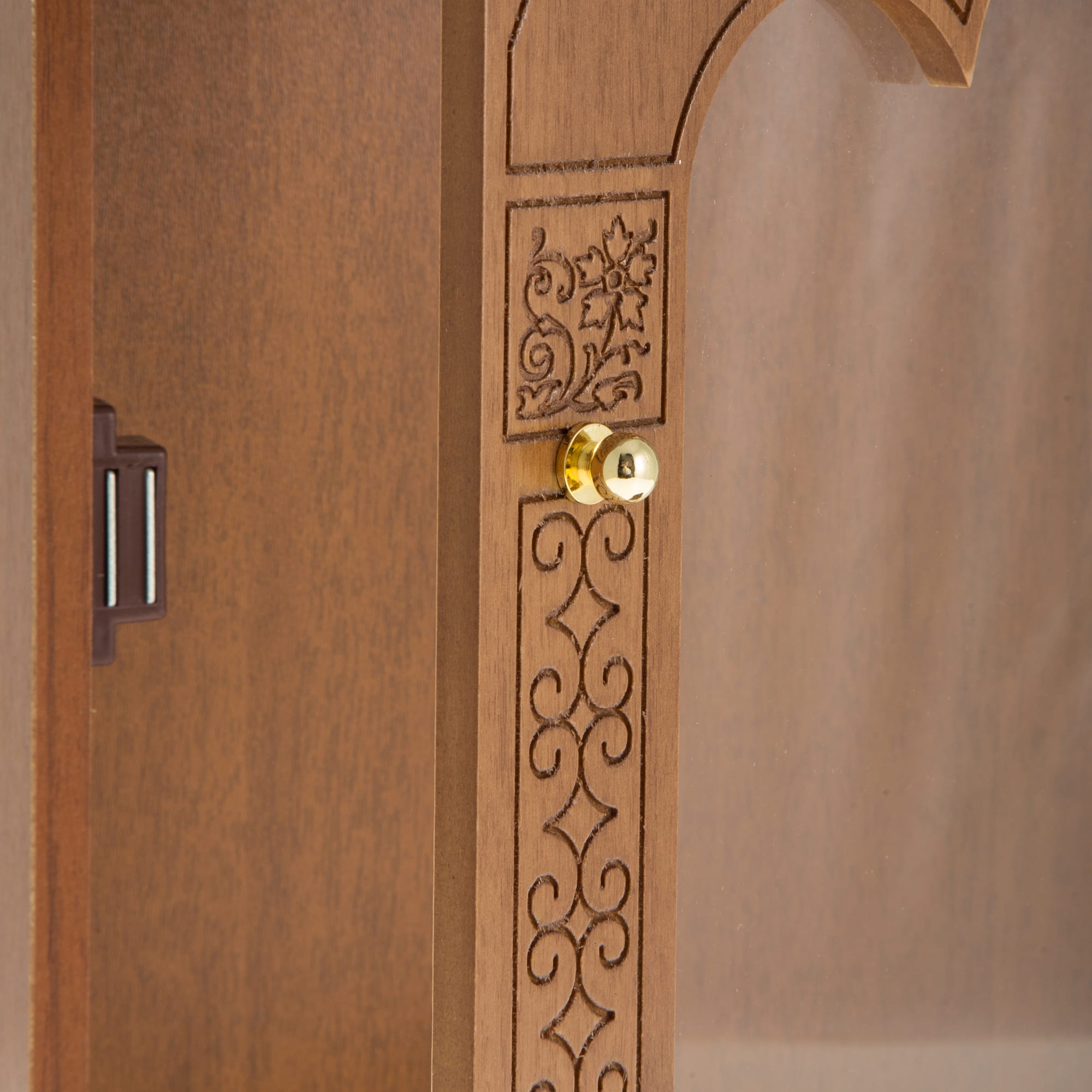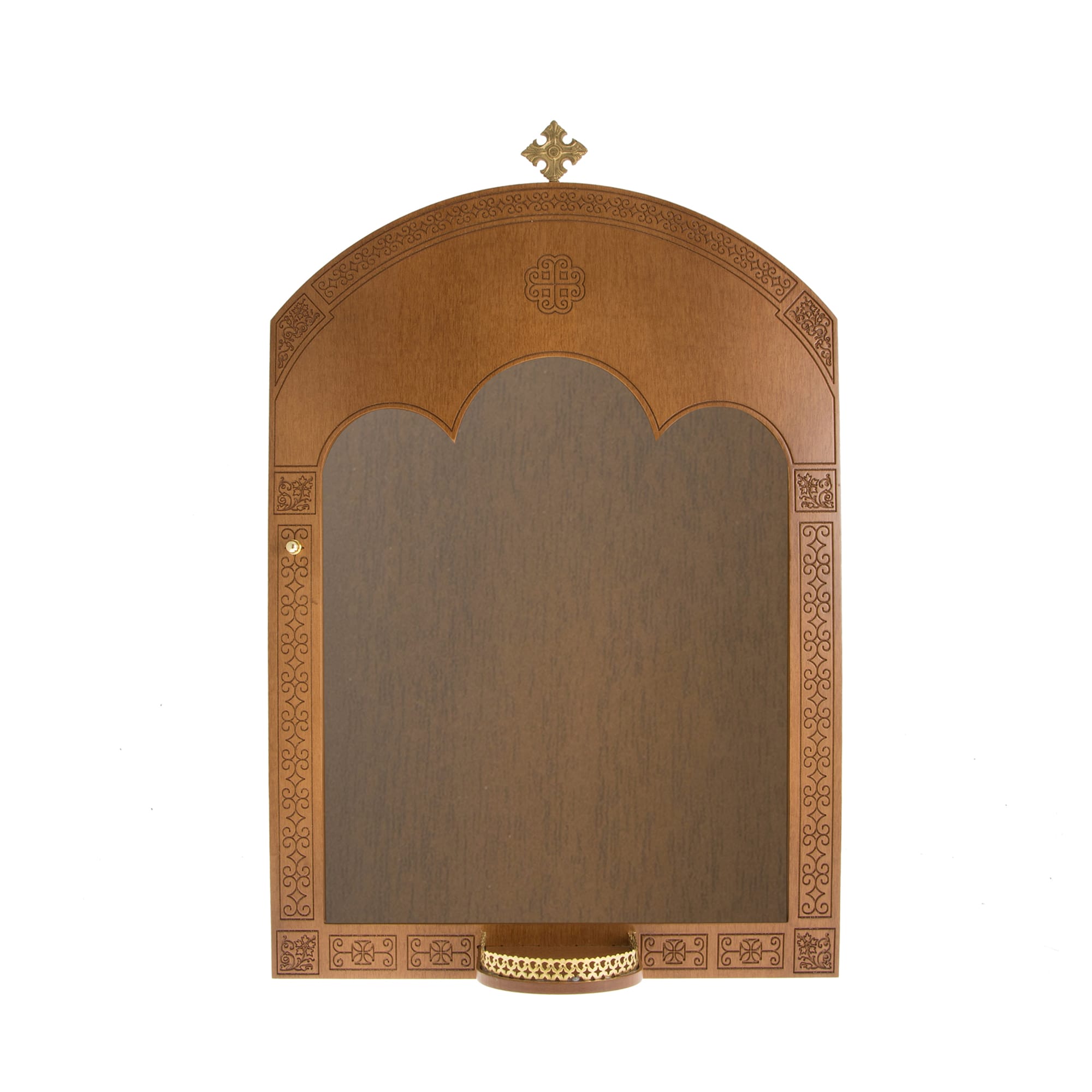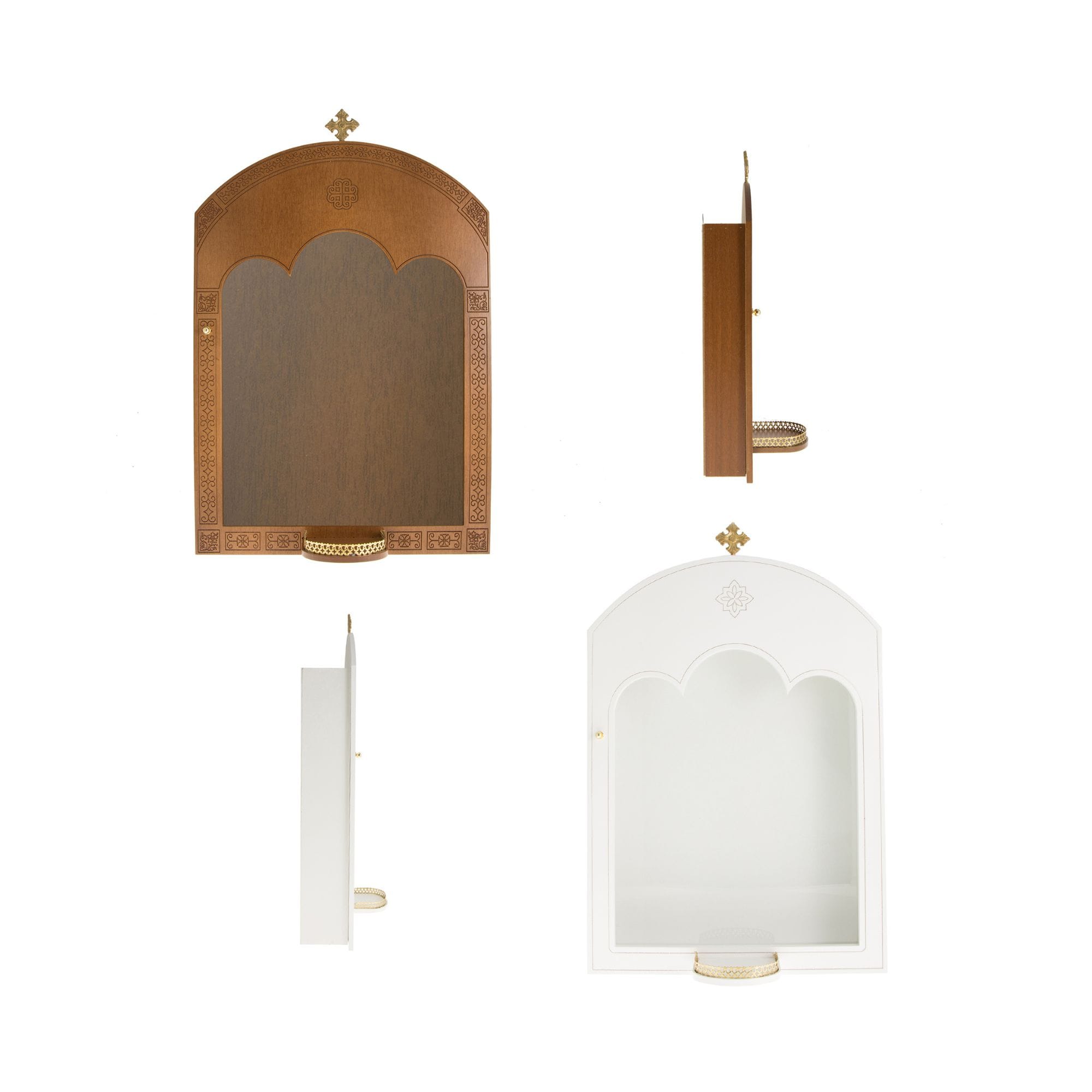 Εικονοστάσια ποιοτικής κατασκευής, ξύλινα, με βιτρίνα. Στο μπροστινό μέρος διαθέτουν βάση για τοποθέτηση καντηλιού. Η πόρτα κλείνει με μαγνήτη.