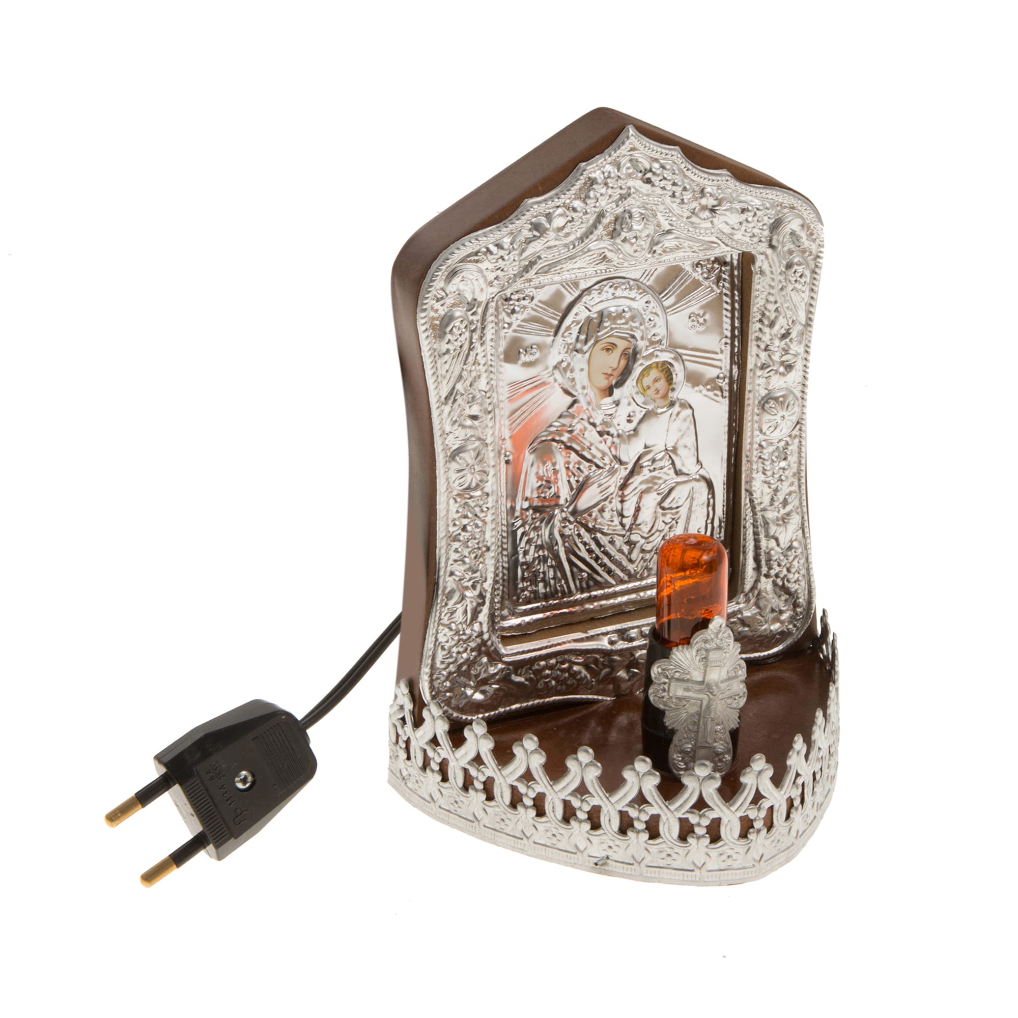 Εικόνισμα που διαθέτει λάμπα η οποία ανάβει με ρεύμα. Έχει και κρίκο, για να τοποθετηθεί στον τοίχο.