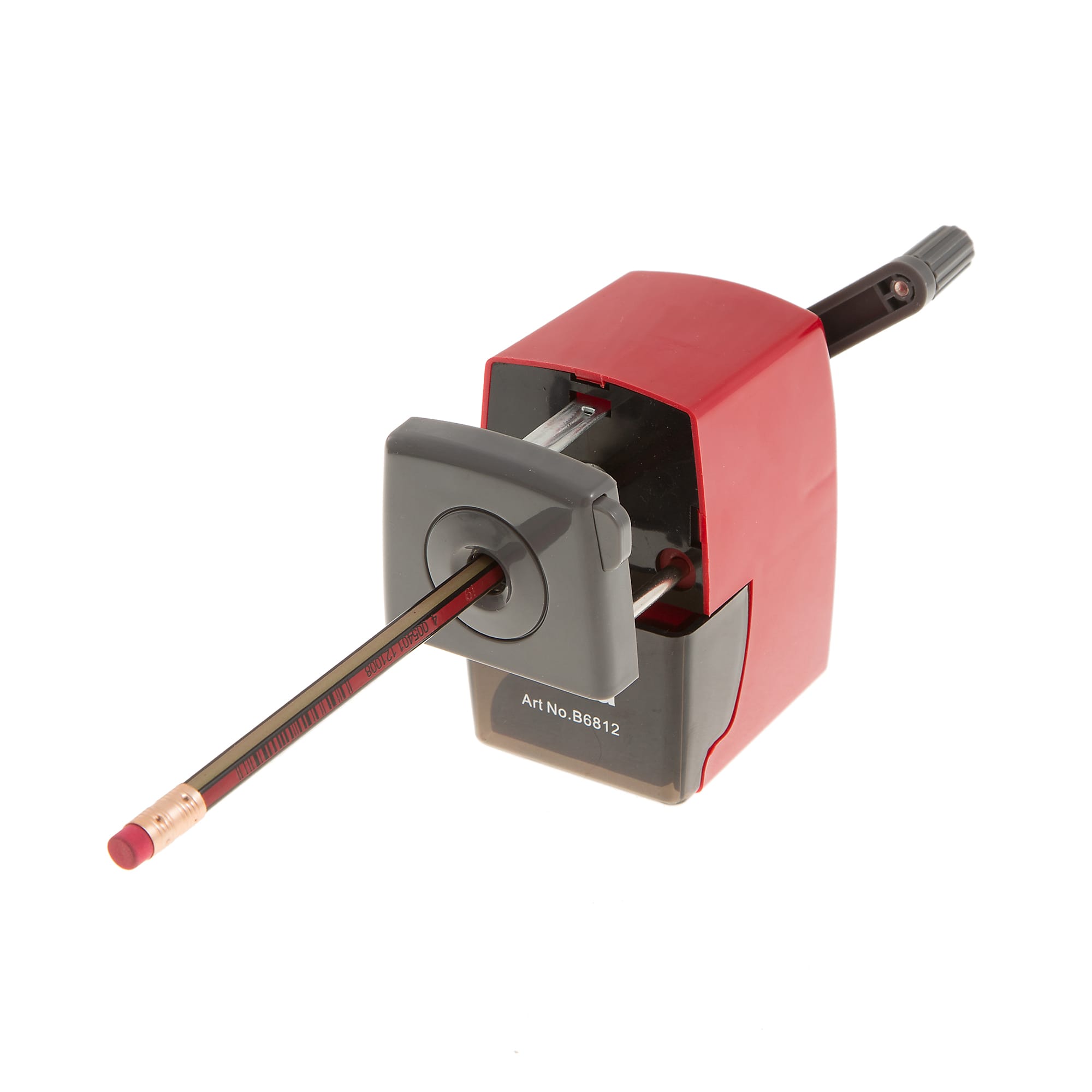 Διαθέτει μανιβέλα για εύκολο και γρήγορο ξύσιμο των μολυβιών και πρακτικό δοχείο για τα ξύσματα, το οποίο εξέρχεται συρταρωτά.