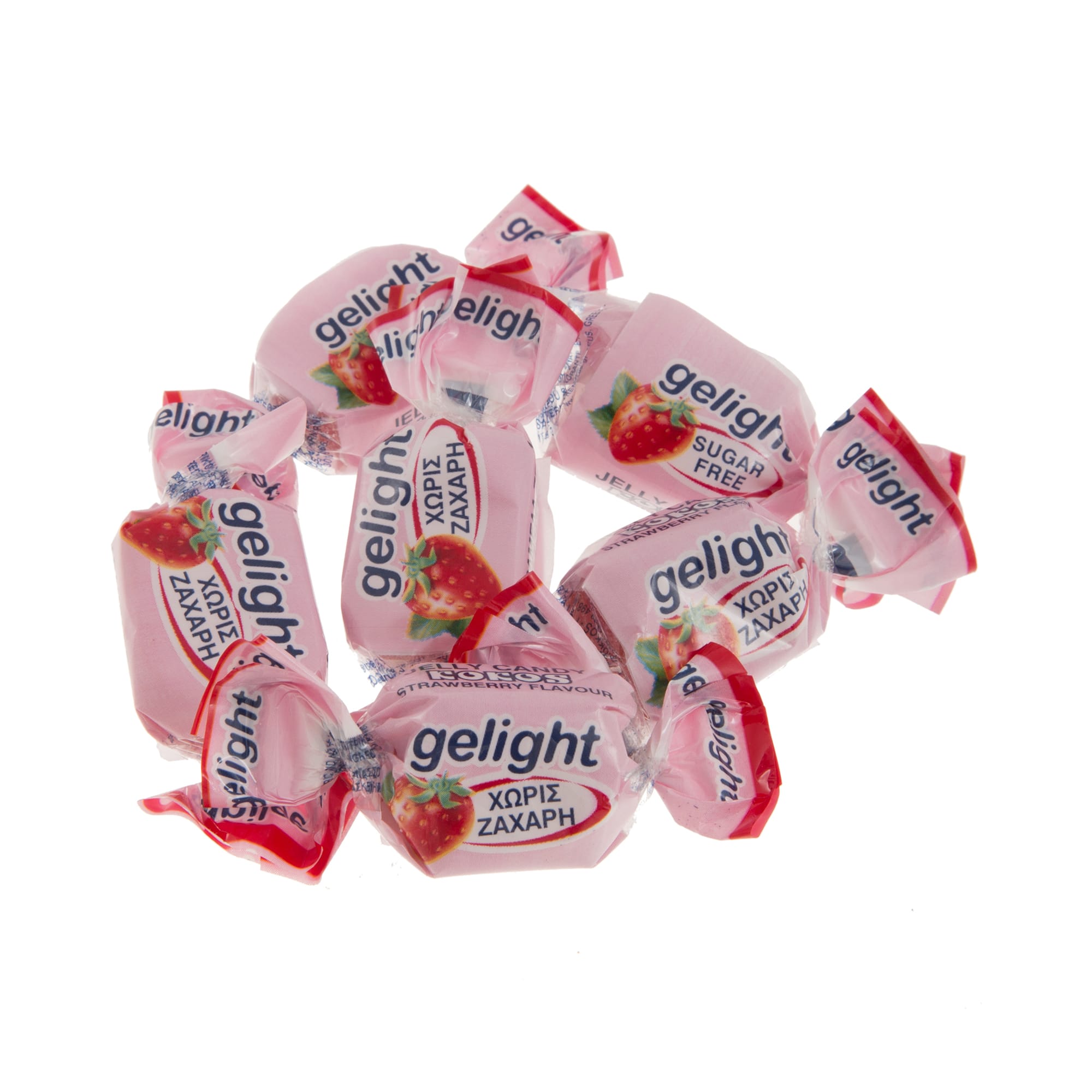 Συστατικά: μαλτιτόλη, πηκτίνη, κιτρικό οξύ, αρωματικές ύλες, χρωστικές: Ε102, E122, E110, E133.