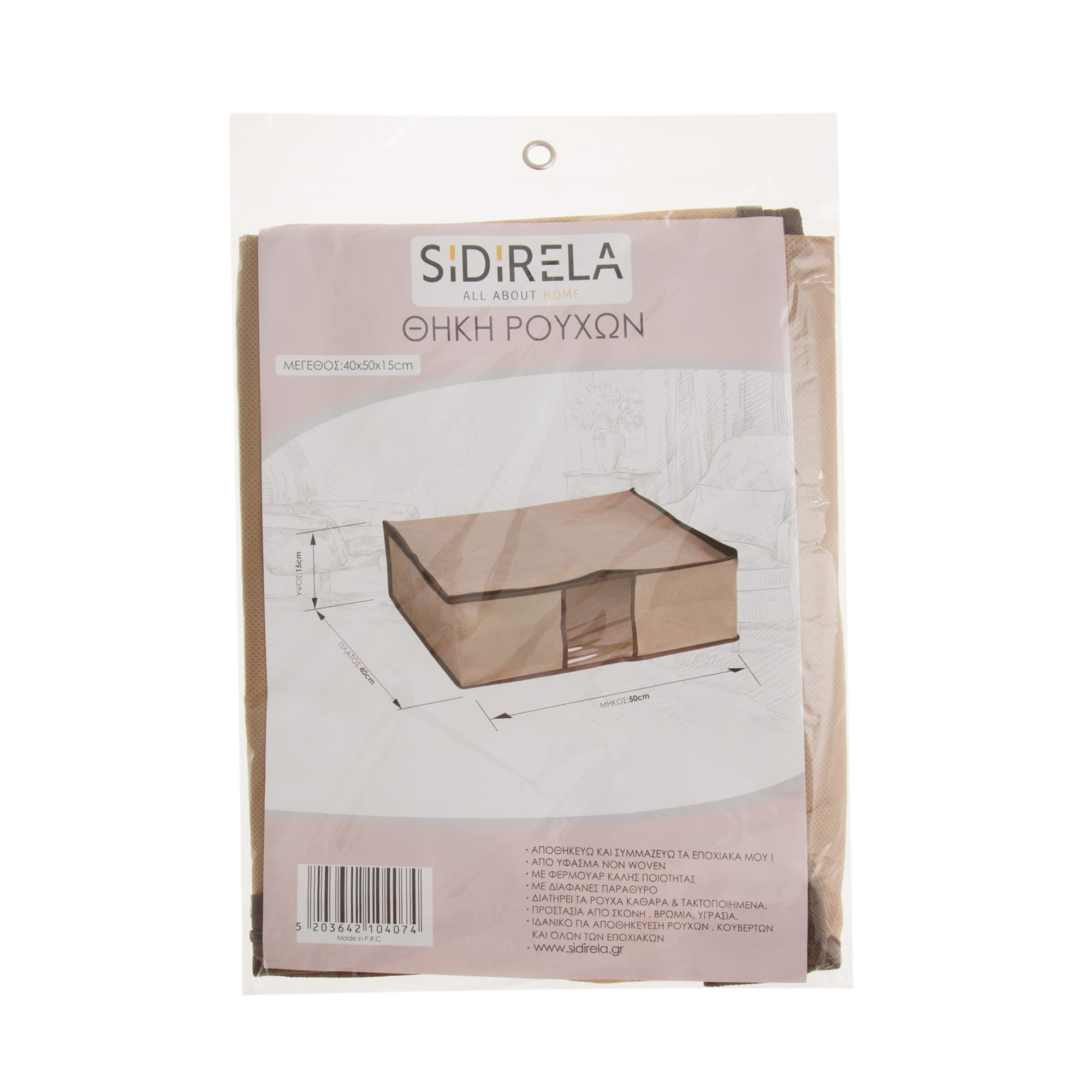 Θήκη ιδανική για τη φύλαξη ογκωδών ρούχων (κουβέρτες, παπλώματα κλπ.), με διαστάσεις (ΜxΠxΥ): 40 x 50 x 15 εκ.