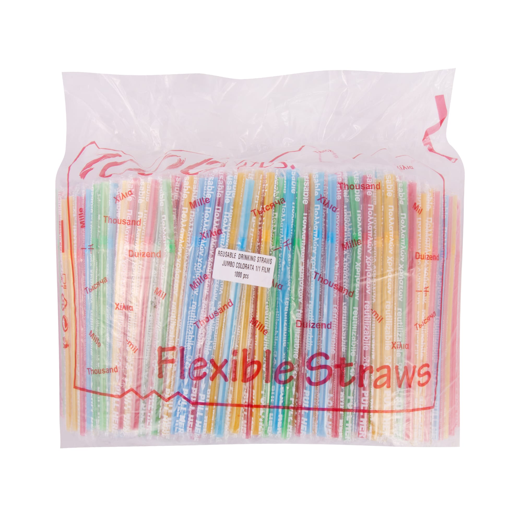 Καλαμάκια πλαστικά, επαναχρησιμοποιήσιμα χρωματιστά σπαστά (γρανίτας) 1.000 τεμ.