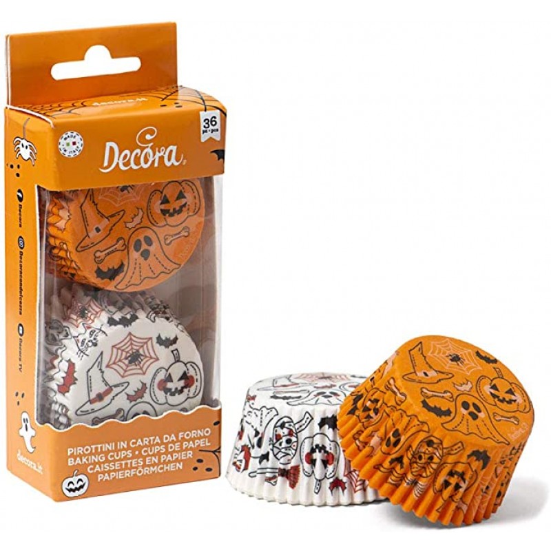 Σετ 36 καραμελόχαρτων Decora με σχέδια Κολοκύθα και Φάντασμα, ιδανικά για cupcakes ή γλυκά Halloween. Διαμέτρου 50mm, ανθεκτικά και εντυπωσιακά στη διακόσμηση.