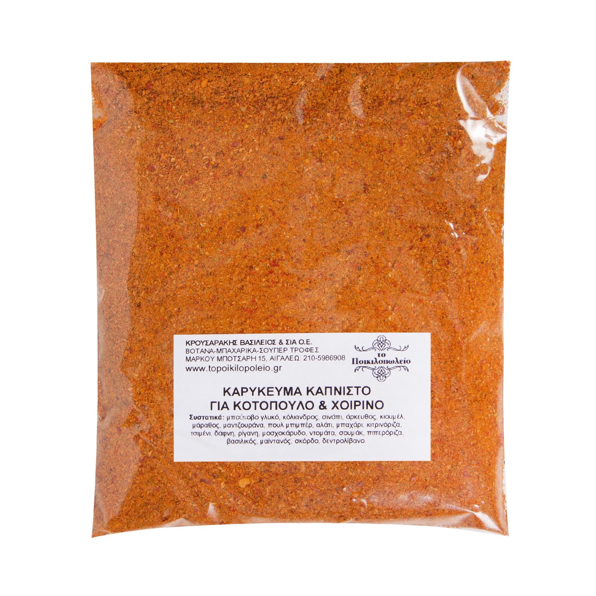 Συστατικά: μπούκοβο γλυκό, κόλιανδρος, σινάπι, άρκευθος, κιουμέλ, μάραθος, μαντζουράνα, πουλ μπιμπέρ, αλάτι, μπαχάρι, κιτρινόριζα, τσιμένι, δάφνη, ρίγανη, μοσχοκάρυδο, ντομάτα, σουμάκ, πιπερόριζα, βασιλικός, μαϊντανός, σκόρδο, δεντρολίβανο.