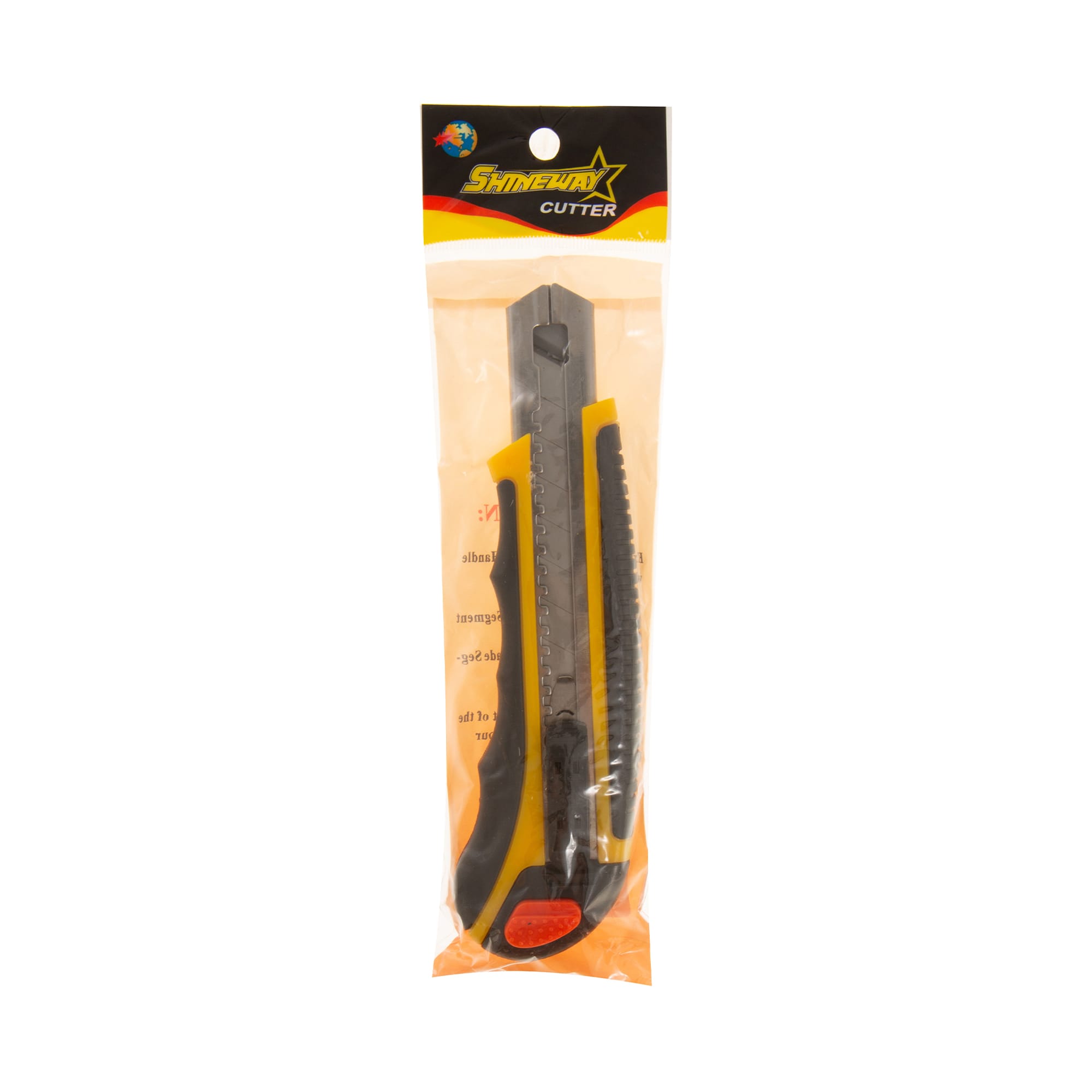 Ποιοτικό κοπίδι της Shineway, με φαρδιά λάμα (18mm) και πλαστικό σκελετό και λαστιχένια λαβή.