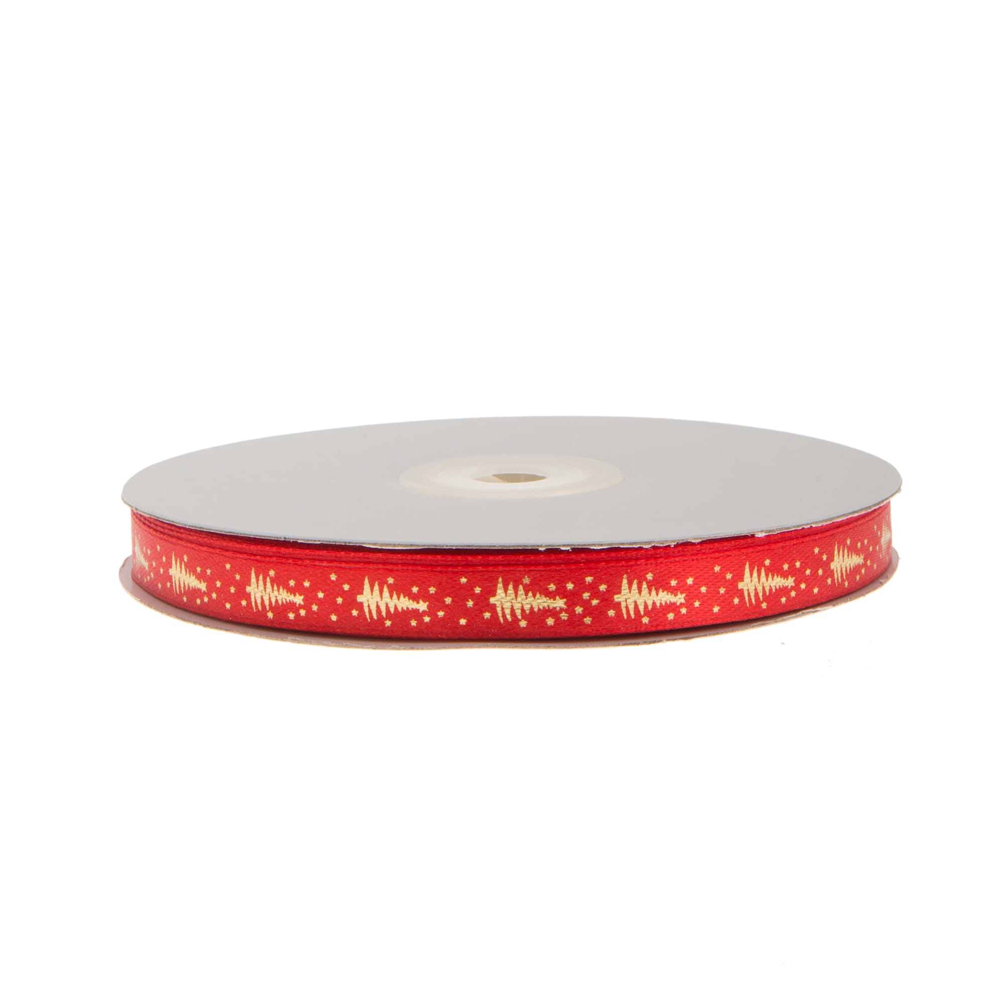 Κορδέλα σατινέ Χριστουγεννιάτικη κόκκινη με χρυσό δέντρο 50 μ.