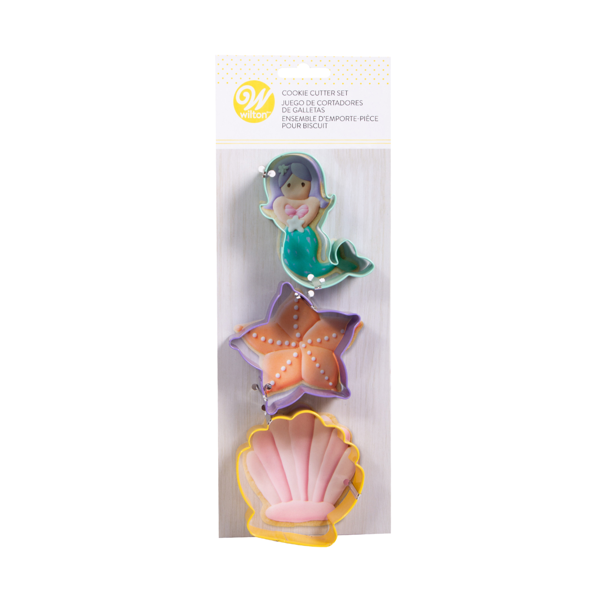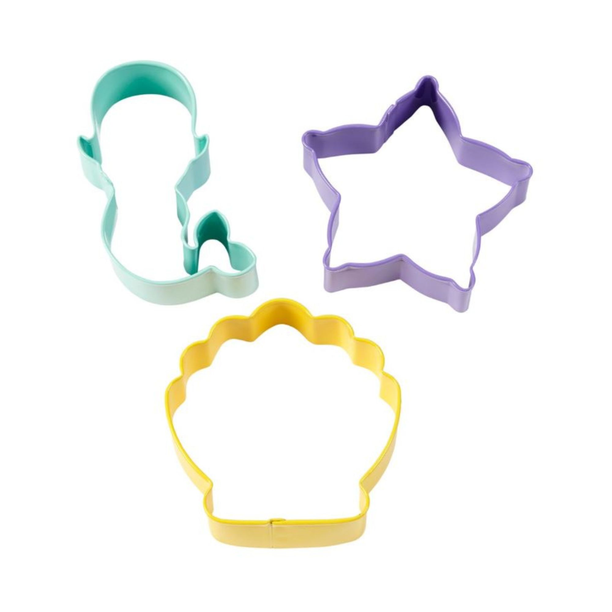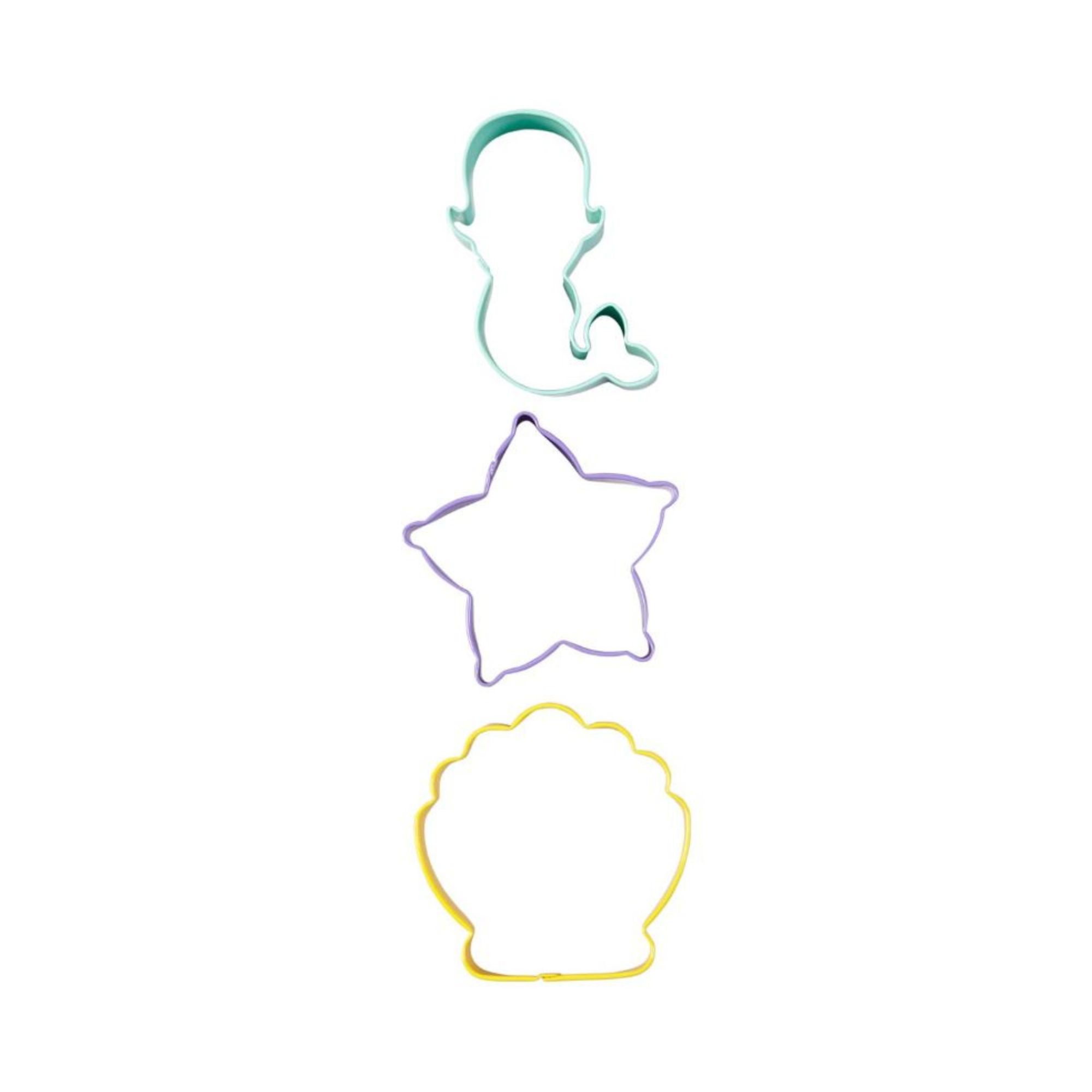 Η συσκευασία περιέχει 3 κουπάτ σε σχήματα: γοργόνας, αστερία και αχιβάδας.