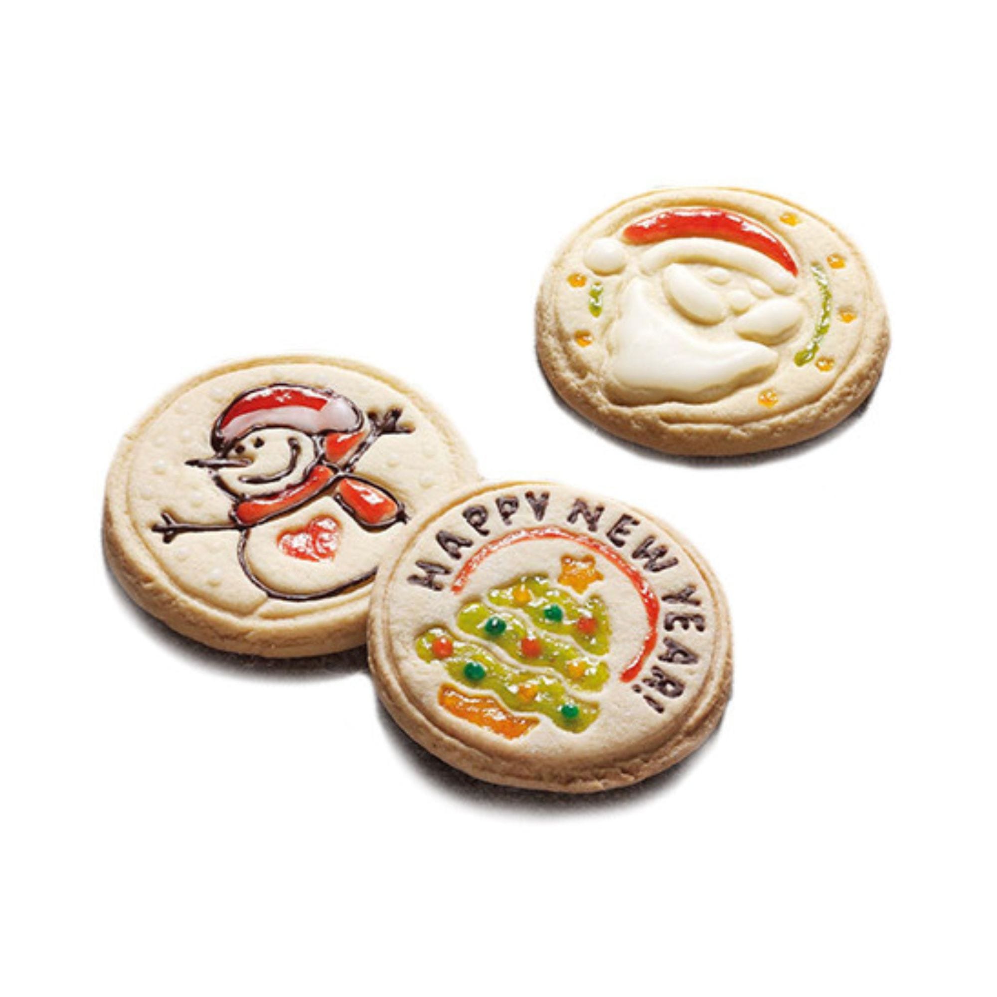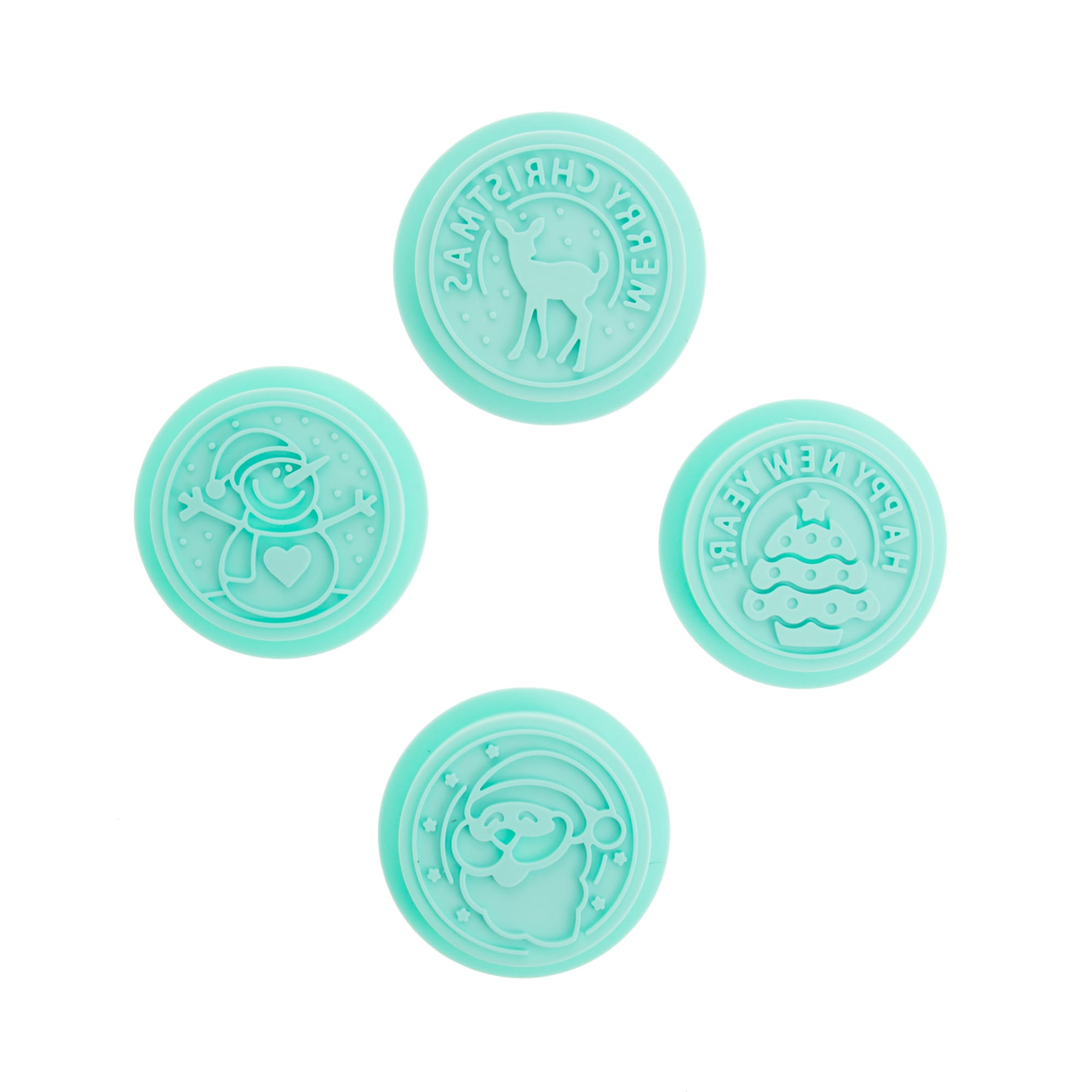 4 κουπάτ σιλικόνης με σχέδια: χιονάνθρωπος, Άγιος Βασίλης, Happy New Year/Έλατο, Merry Christmas/Τάρανδος.