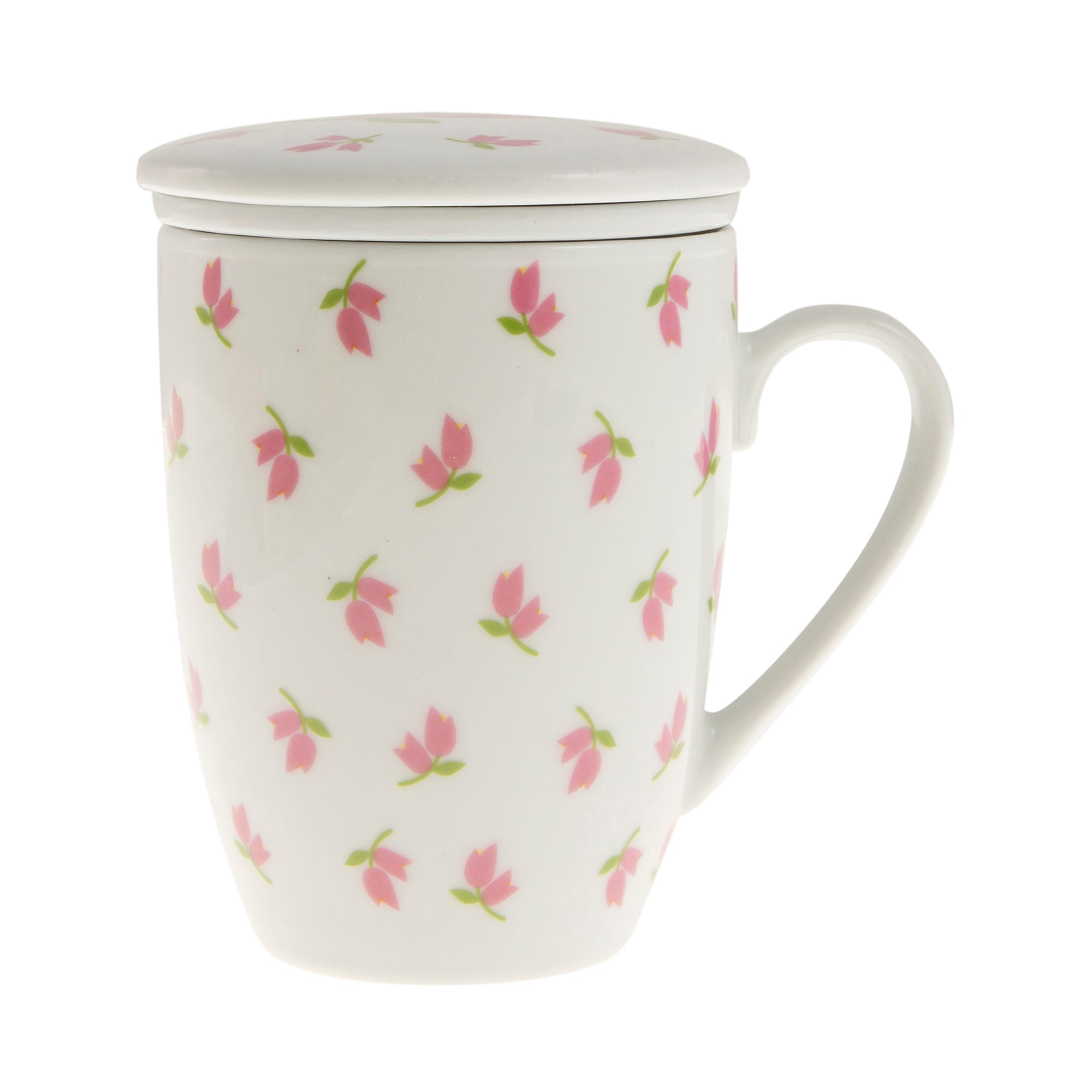 Κούπα τσαγιού πορσελάνινη με φίλτρο και καπάκι ροζ τουλίπες (ET-4071) 1 τεμ.