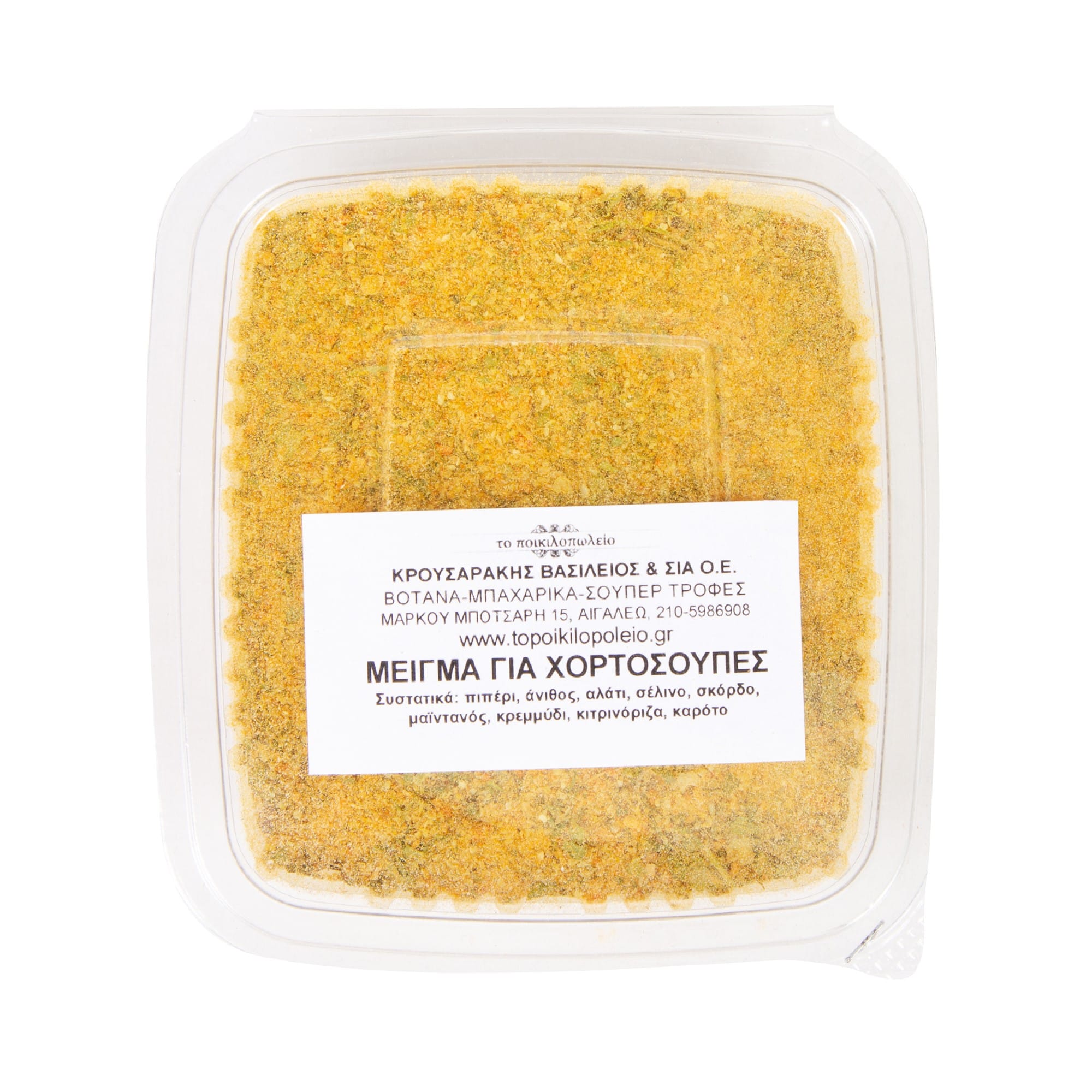 Συστατικά: πιπέρι, άνιθος, αλάτι, σέλινο, σκόρδο, μαϊντανός, κρεμμύδι, κιτρινόριζα, καρότο.