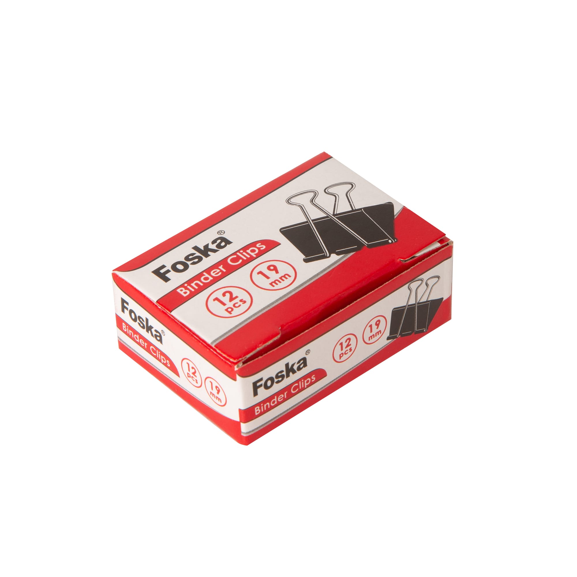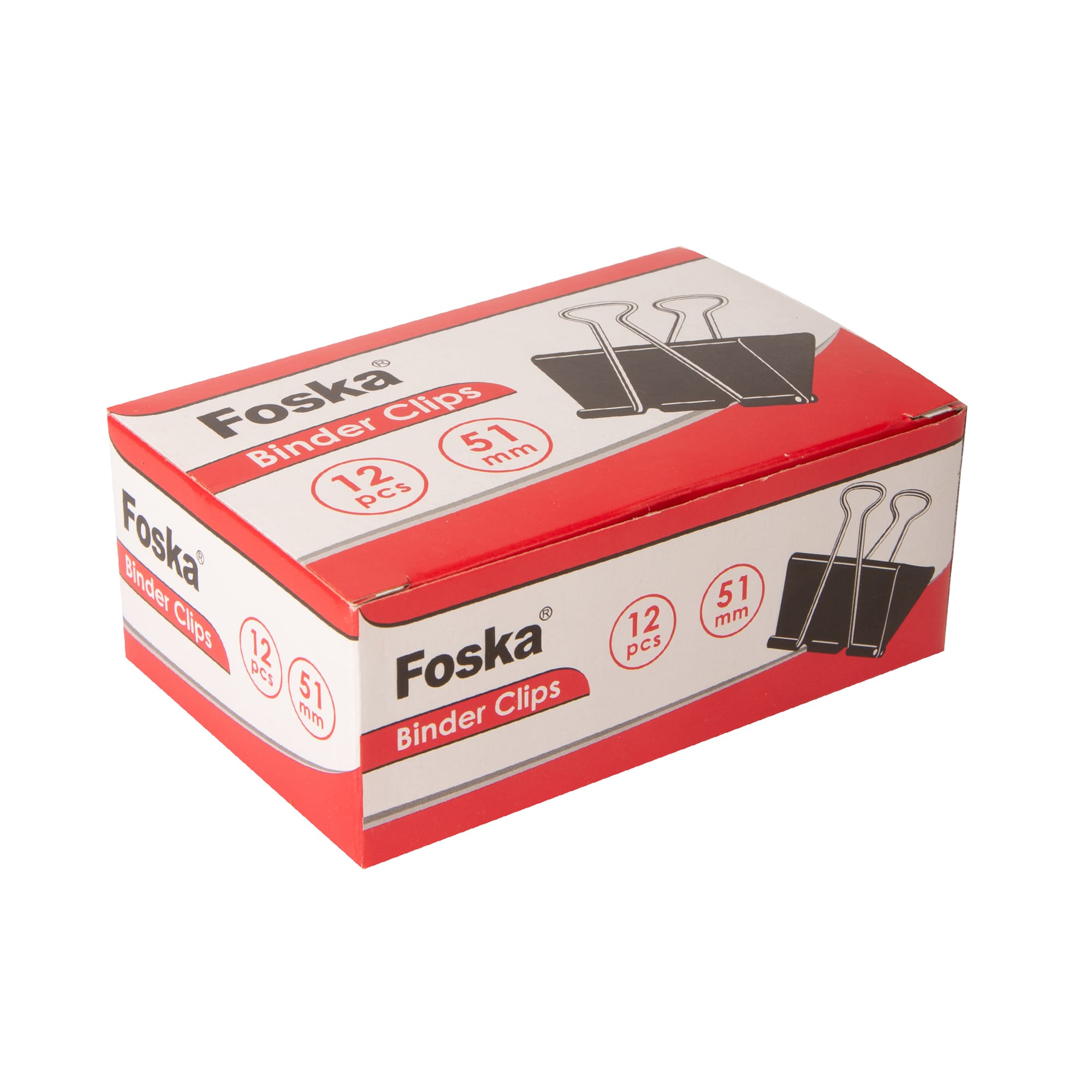 Μεταλλικά μαύρα κλιπ για έγγραφα Foska Binder Clips κουτί 12 τεμ.