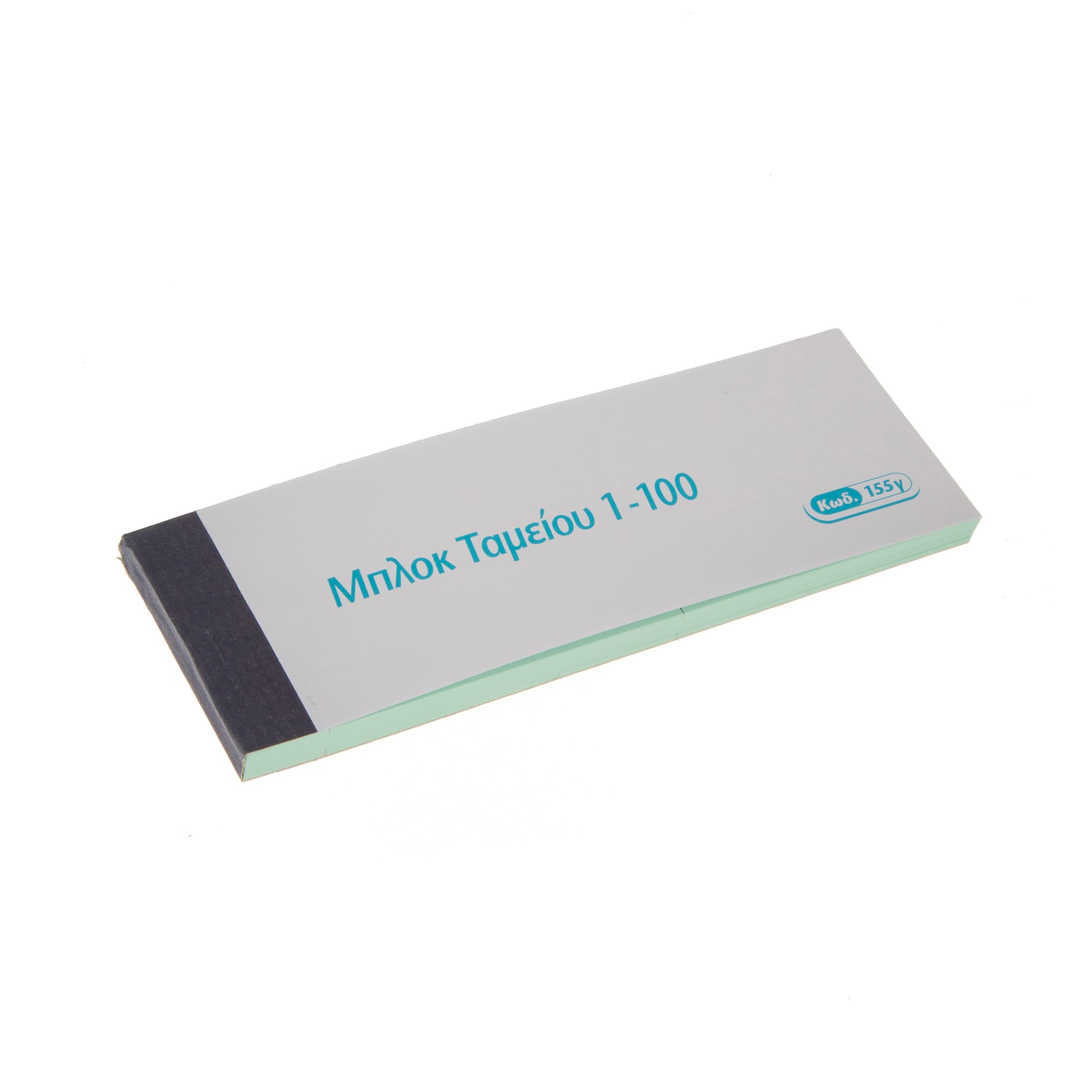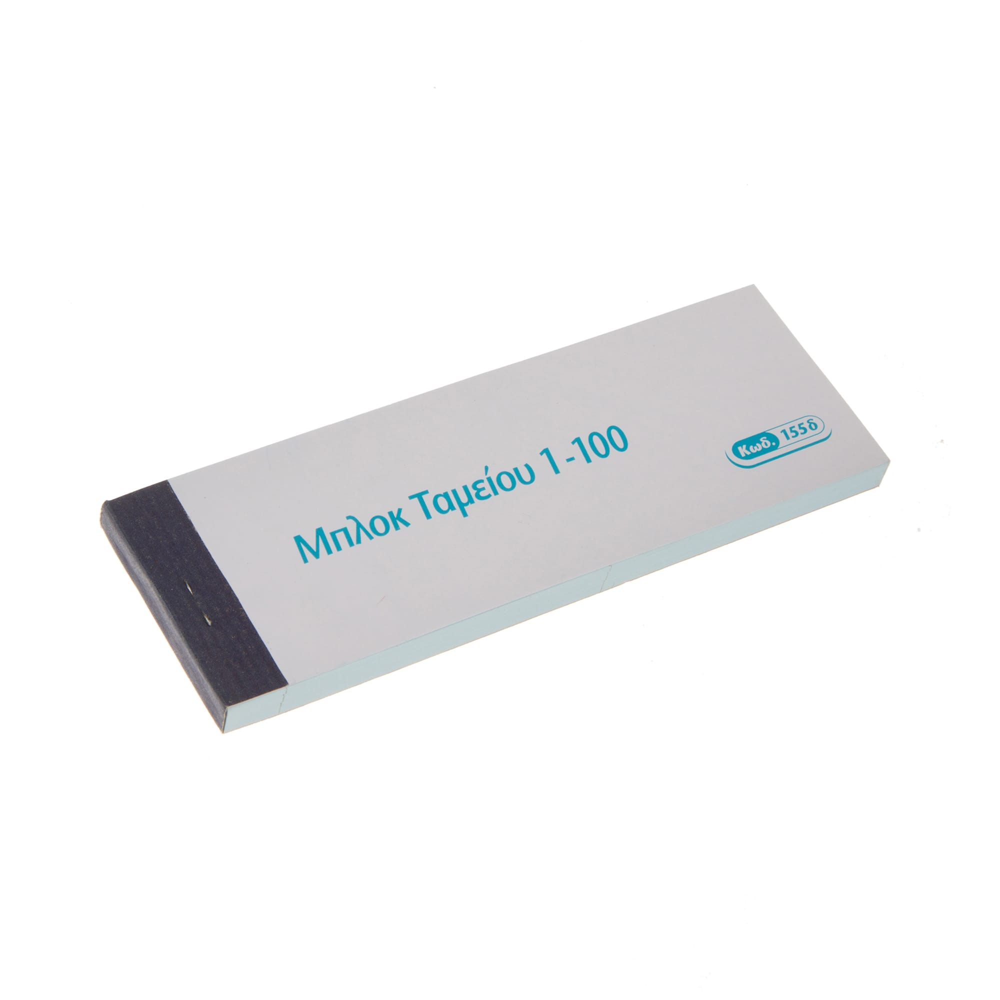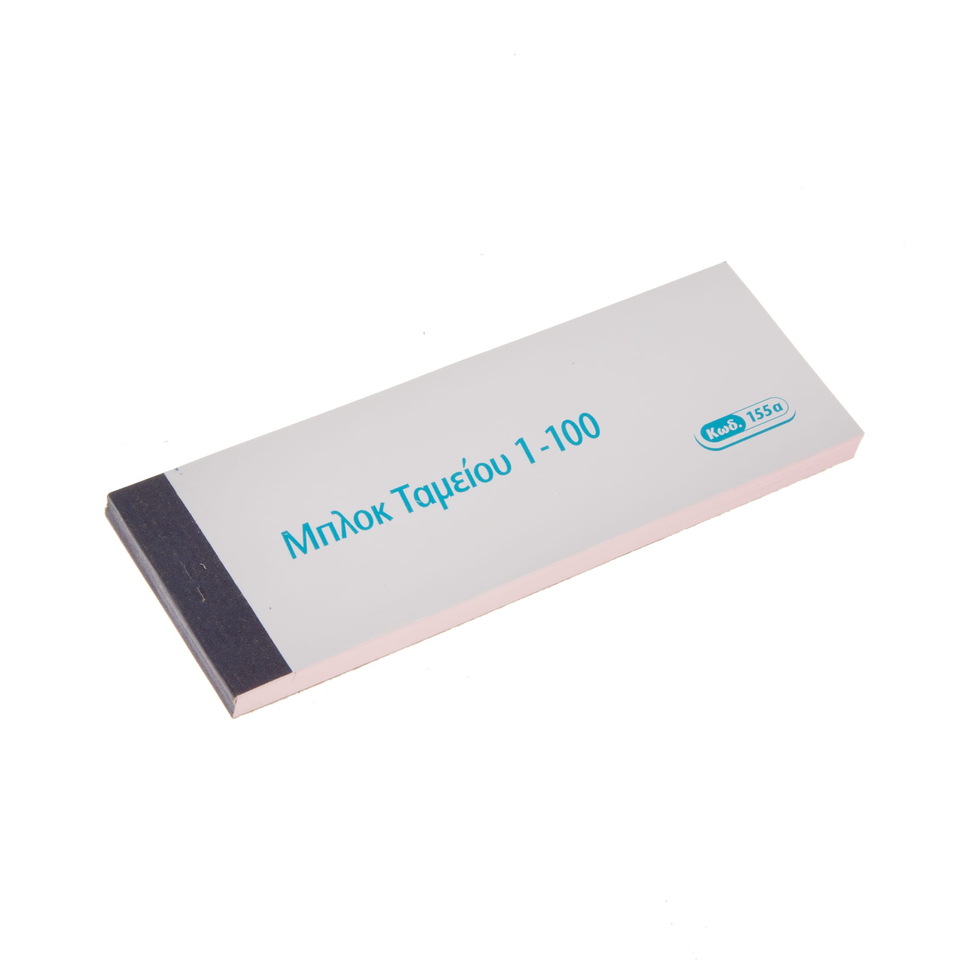 Μπλοκάκι ταμείου (είσοδος μαγαζιών, μπαρ κλπ.), με 100 περφορέ, χρωματιστά φύλλα: αριστερό-δεξί, για ταμείο-πελάτη αντίστοιχα.