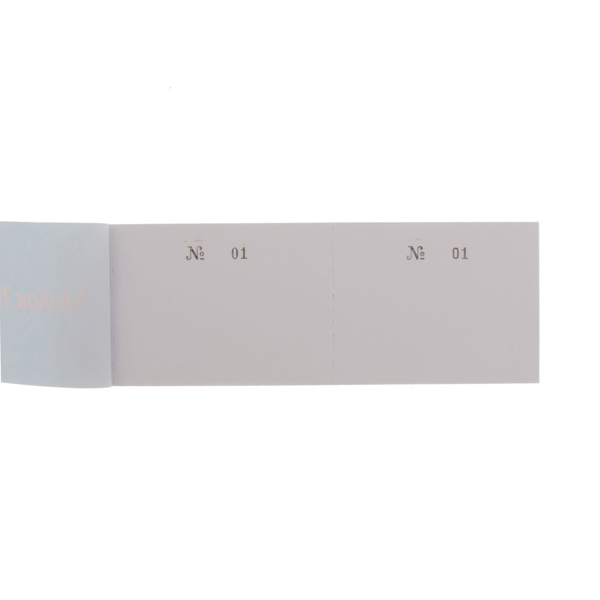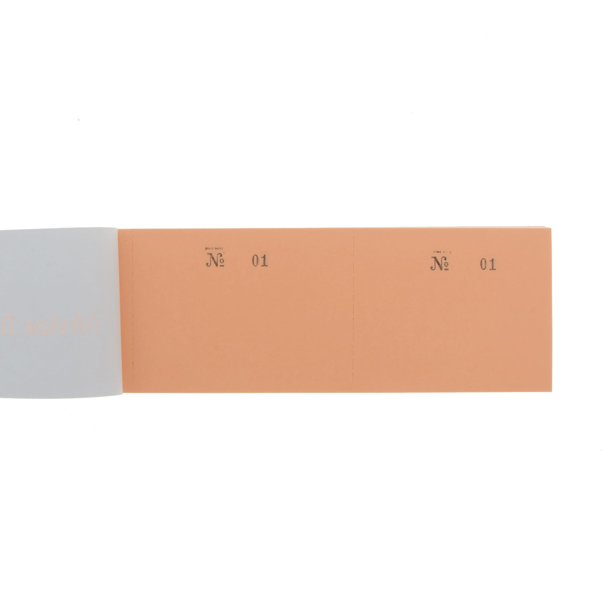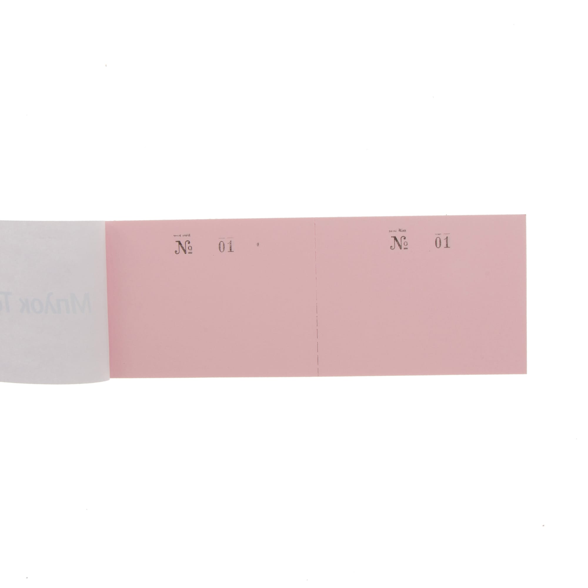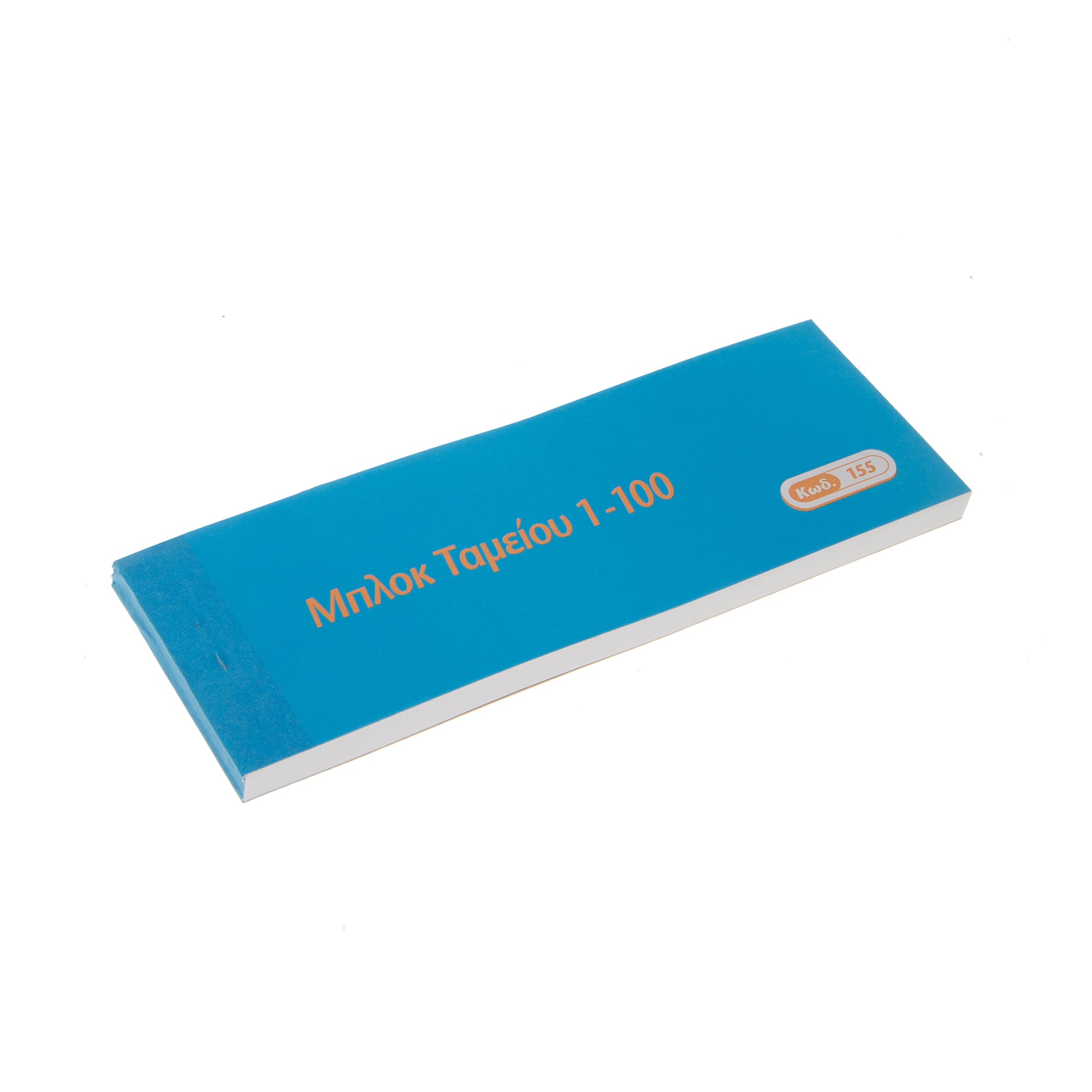 Μπλοκάκι ταμείου (είσοδος μαγαζιών, μπαρ κλπ.), με 100 περφορέ, χρωματιστά φύλλα: αριστερό-δεξί, για ταμείο-πελάτη αντίστοιχα.