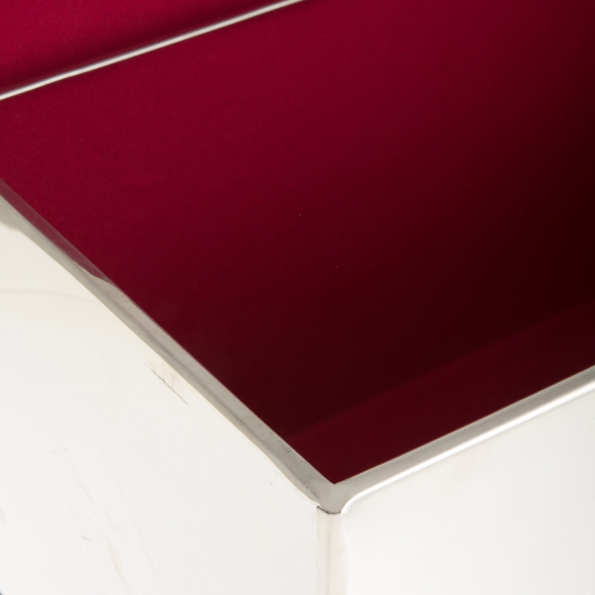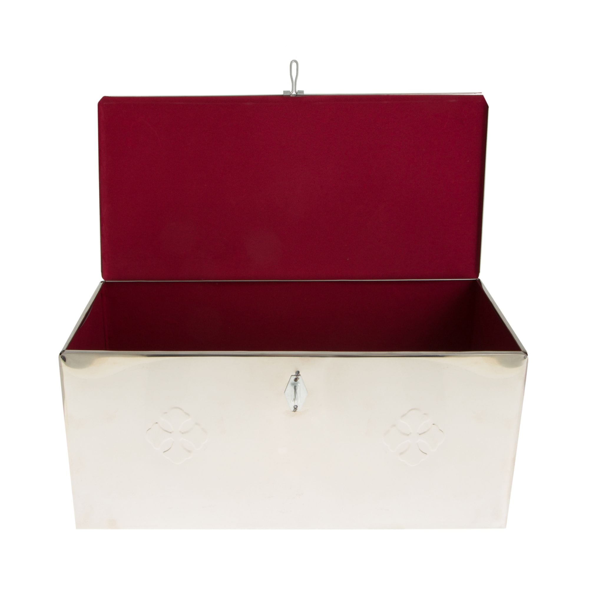 Οστεοφυλάκιο inox με κόκκινη, βελούδινη επένδυση στο εσωτερικό. Οι διαστάσεις του είναι (ΜxΠxΥ): 50 x 24 x 23 εκ.