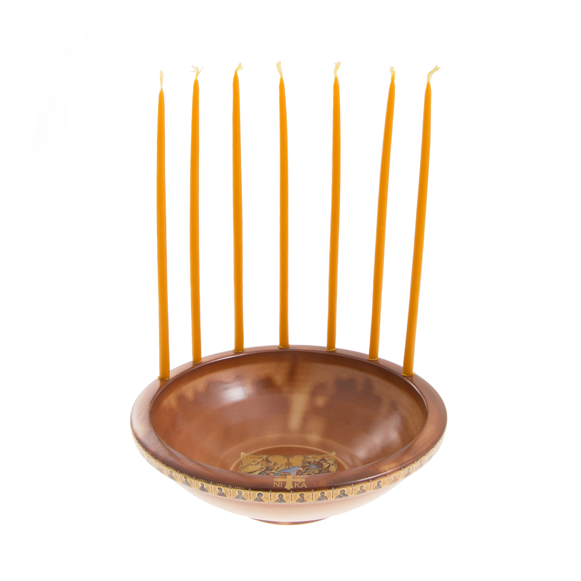 Στη μία πλευρά του χείλους έχει 7 θέσεις για κεριά, με διάμετρο ~0,55 εκ.