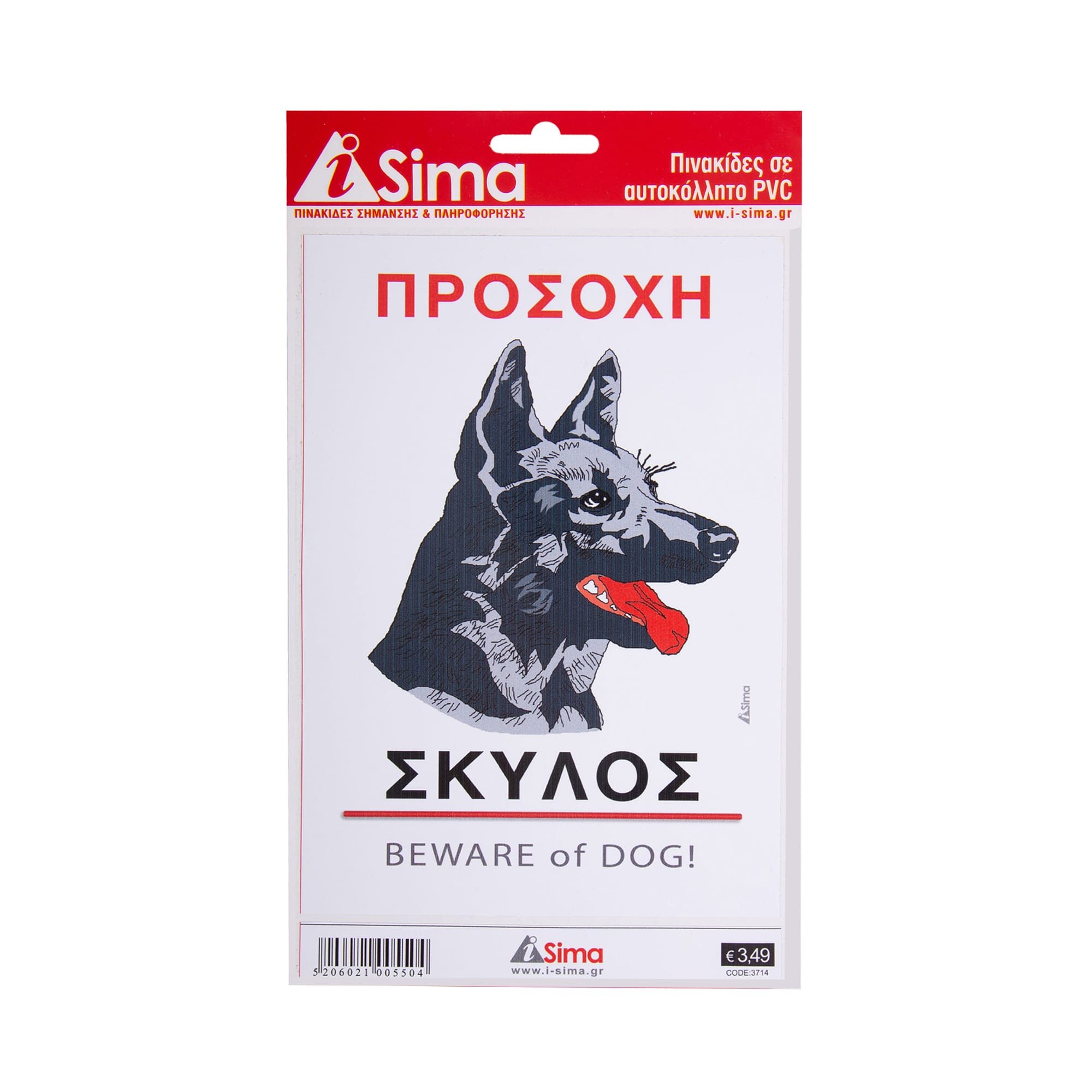 Πινακίδα “Προσοχή Σκύλος” i-Sima αυτοκόλλητη pvc (3714)