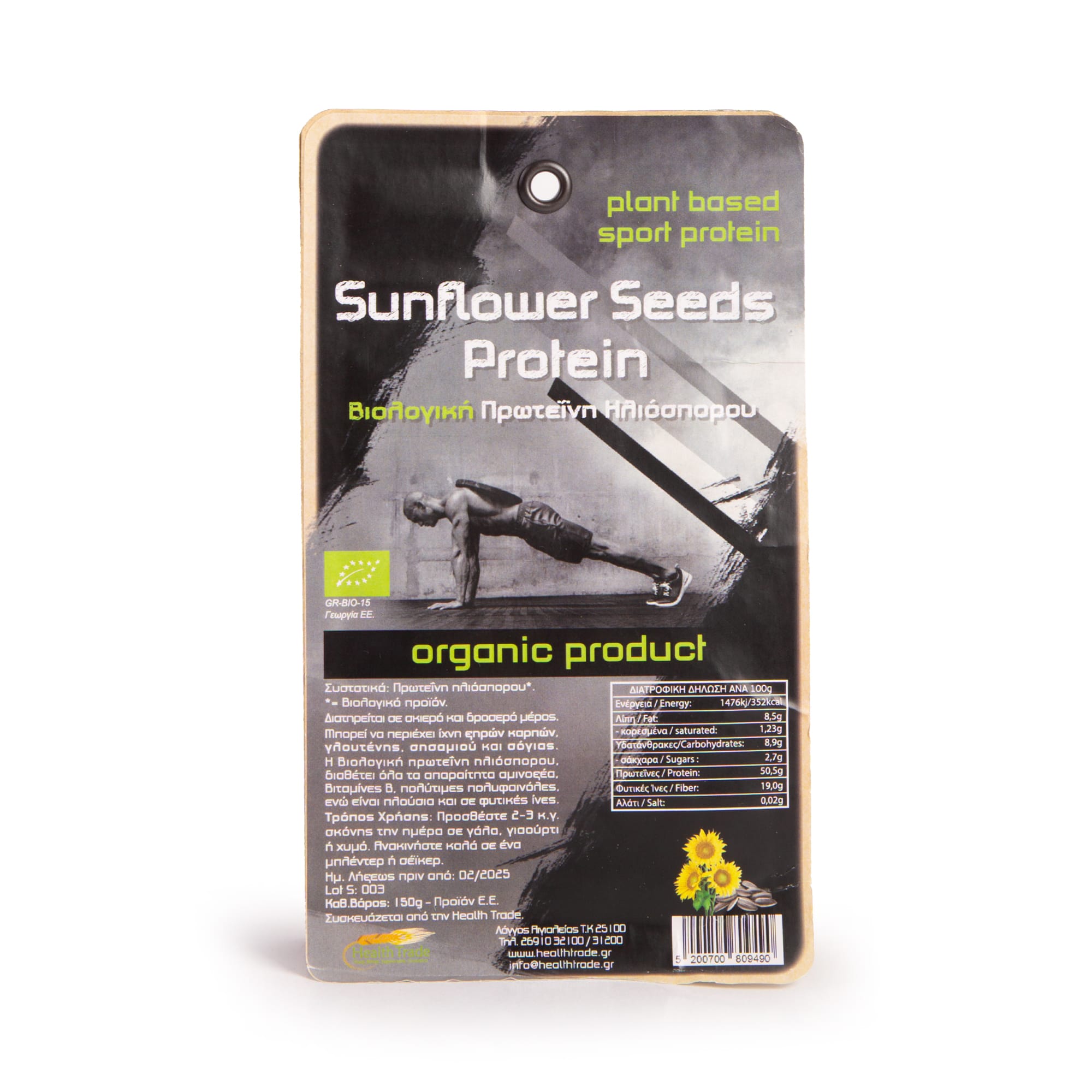 Η βιολογική πρωτεΐνη ηλιόσπορου της Health Trade διαθέτει όλα τα απαραίτητα αμινοξέα, βιτ. Β, πολύτιμες πολυφαινόλες, ενώ είναι πλούσια και σε φυτικές ίνες.