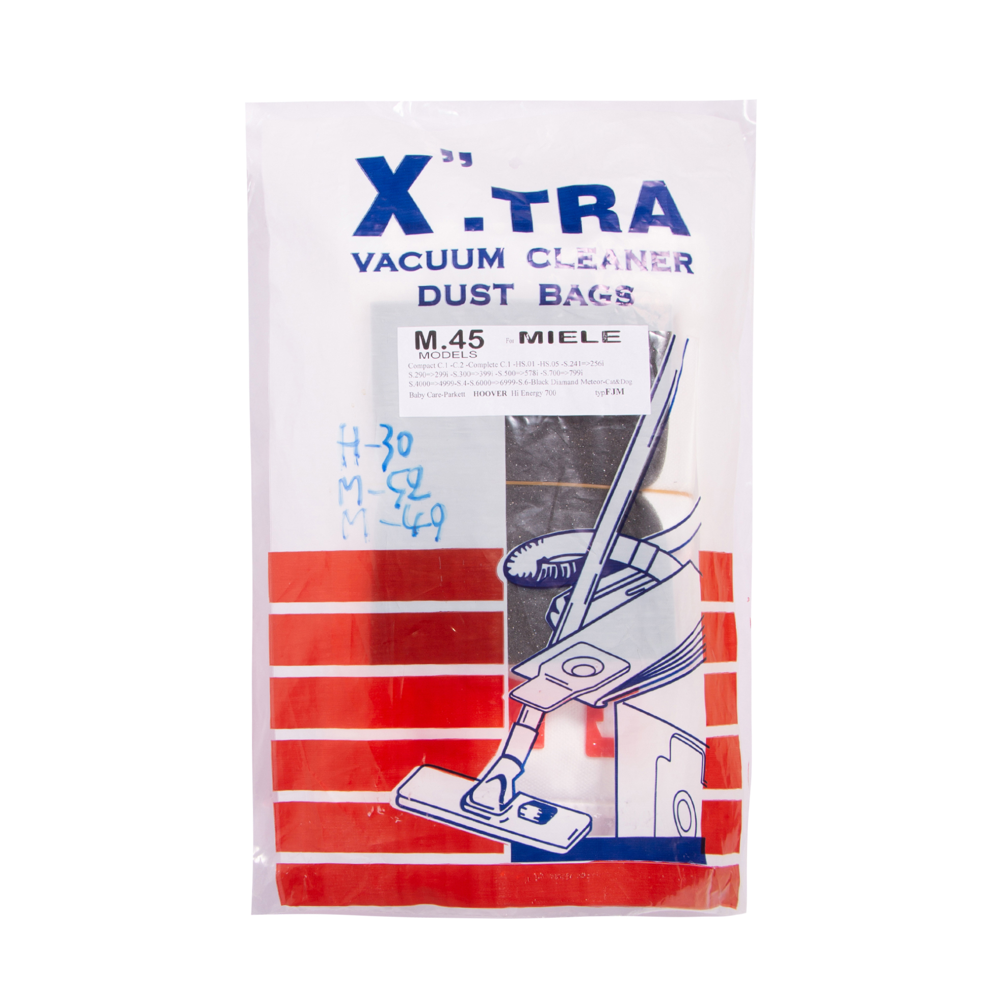 Υφασμάτινες σακούλες για ηλεκτρική σκούπα XTRA M.45, σε συσκευασία 10 τεμαχίων, σχεδιασμένες για υψηλή απόδοση φιλτραρίσματος και μεγαλύτερη αντοχή σε σχέση με τις απλές χάρτινες σακούλες. Εξασφαλίζουν καλύτερη συγκράτηση σκόνης και αλλεργιογόνων, διατηρώντας σταθερή τη ροή αέρα και την απορροφητική ισχύ της σκούπας. Κατάλληλες για καθημερινή και απαιτητική οικιακή χρήση.