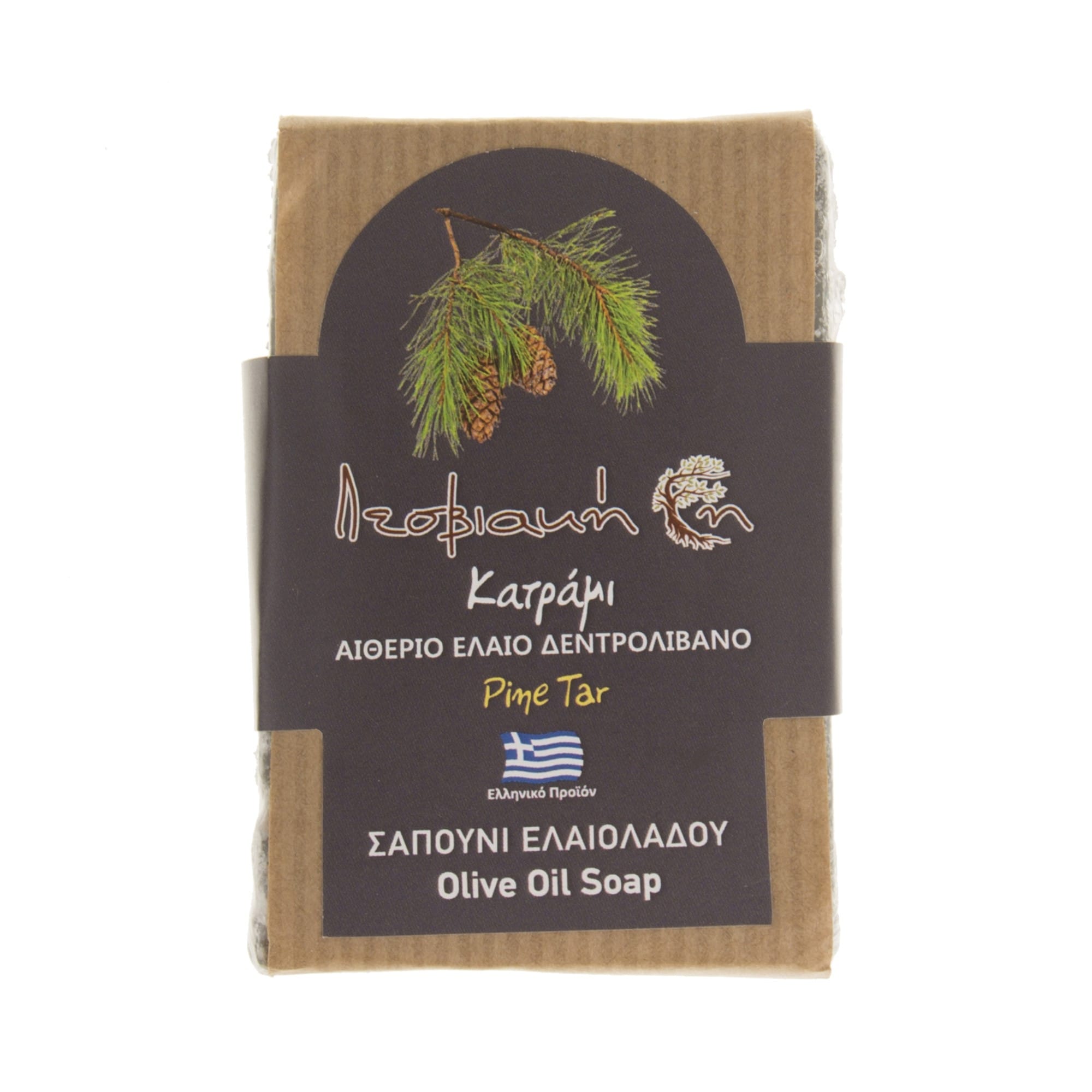 Σαπούνι μαύρο “Κατράμι” Λεσβιακή Γη με ελαιόλαδο & αιθέριο έλαιο δεντρολίβανου 100 γρ.
