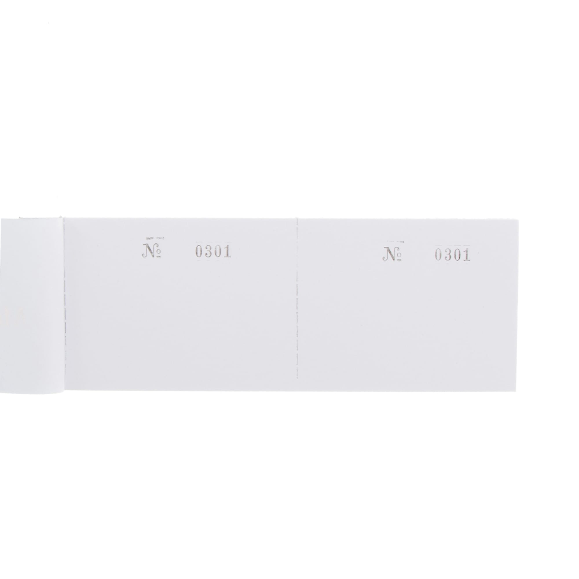 Μπλοκάκι λαχνών (είσοδος μαγαζιών, κλήροι.), με 1.000 περφορέ, λευκά φύλλα: αριστερό-δεξί, για ταμείο-πελάτη αντίστοιχα.