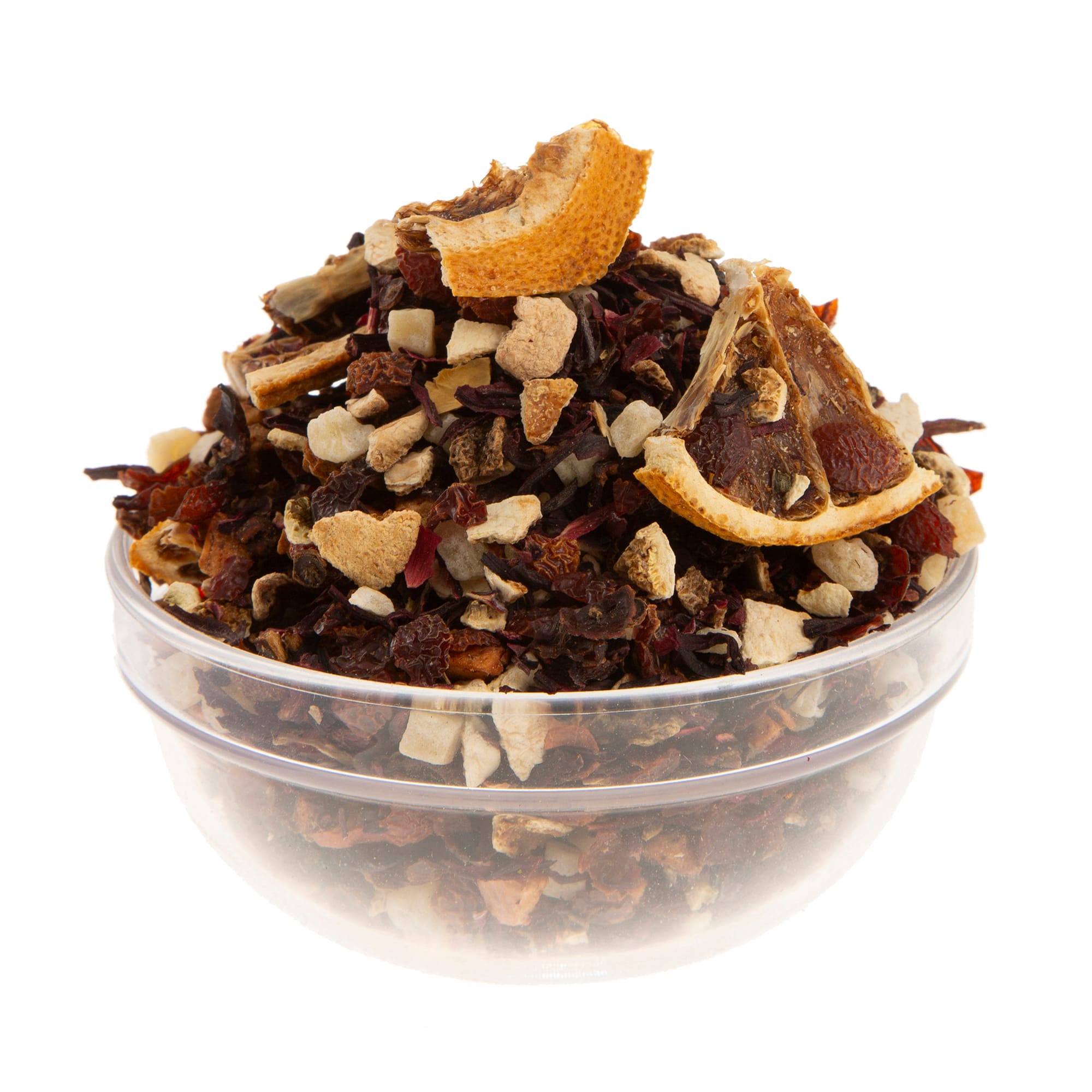 Σύνθεση: περιβλήματα κυνόροδου, ιβίσκος, μήλο, φλούδα λεμονιού, ανανάς, γκρέϊπφρουτ.