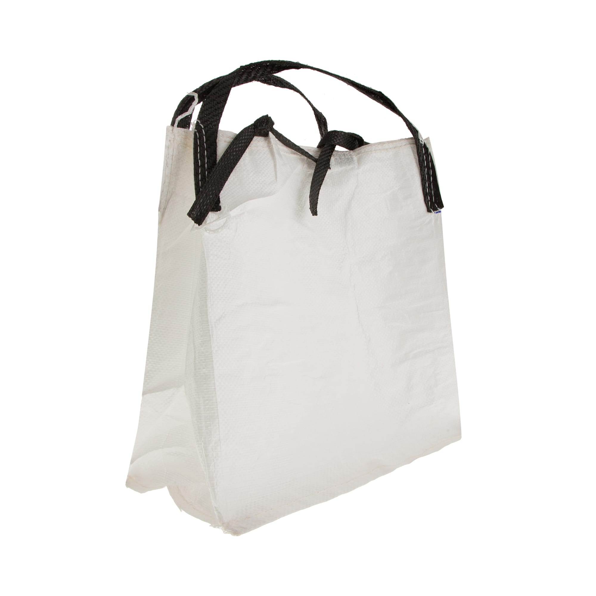 Πλαστική τσάντα πολλαπλών χρήσεων, ιδανική για τη μεταφορά βαρέων αντικειμένων, όπως καυσόξυλα, σε λευκό χρώμα.