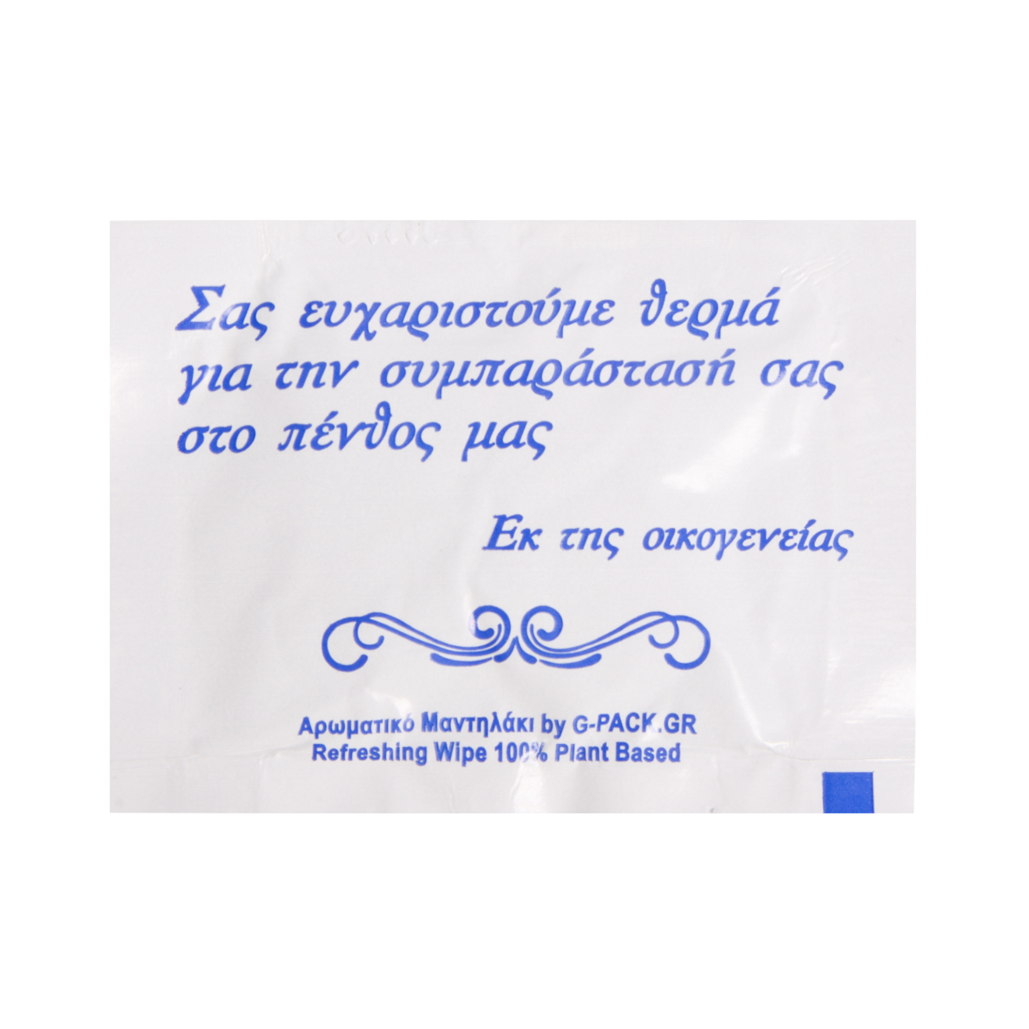 Υγρά αρωματικά μαντηλάκια μνημοσύνου τυπωμένα με ευχαριστήριο μήνυμα