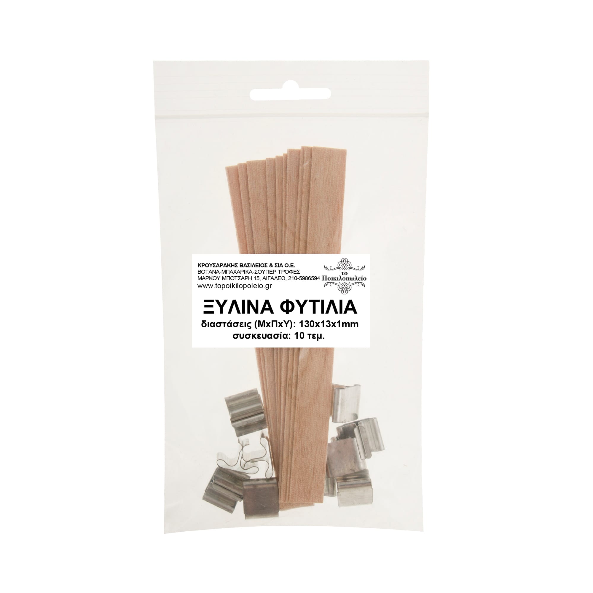 Διαστάσεις του κάθε φυτιλιού (ΜxΠxΥ): 13 εκ. x 1,3 εκ. x 1 mm.