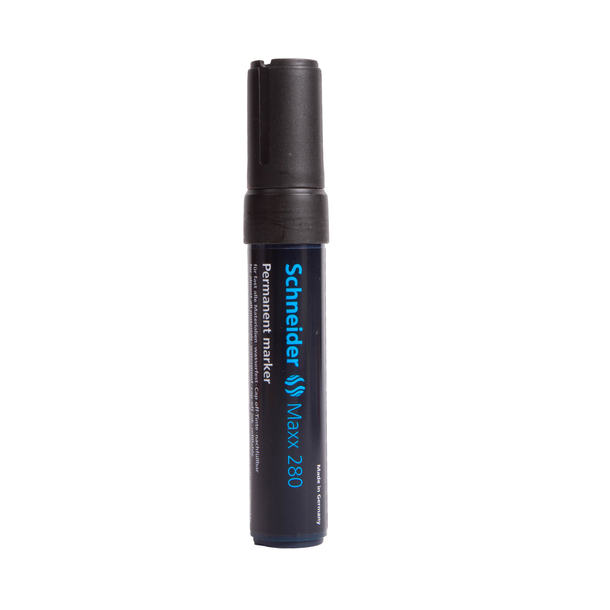 Μαρκαδόρος ανεξίτηλος Schneider Maxx 280, μεγάλου μεγέθους, ιδανικός για έντονη και ευδιάκριτη γραφή σε πολλές επιφάνειες όπως χαρτί, χαρτόνι, πλαστικό, μέταλλο και γυαλί. Διαθέτει ανθεκτική μύτη με στρογγυλή γραφή και μελάνι υψηλής ποιότητας που στεγνώνει γρήγορα και δεν ξεθωριάζει. Κατάλληλος για επαγγελματική, σχολική και οικιακή χρήση.