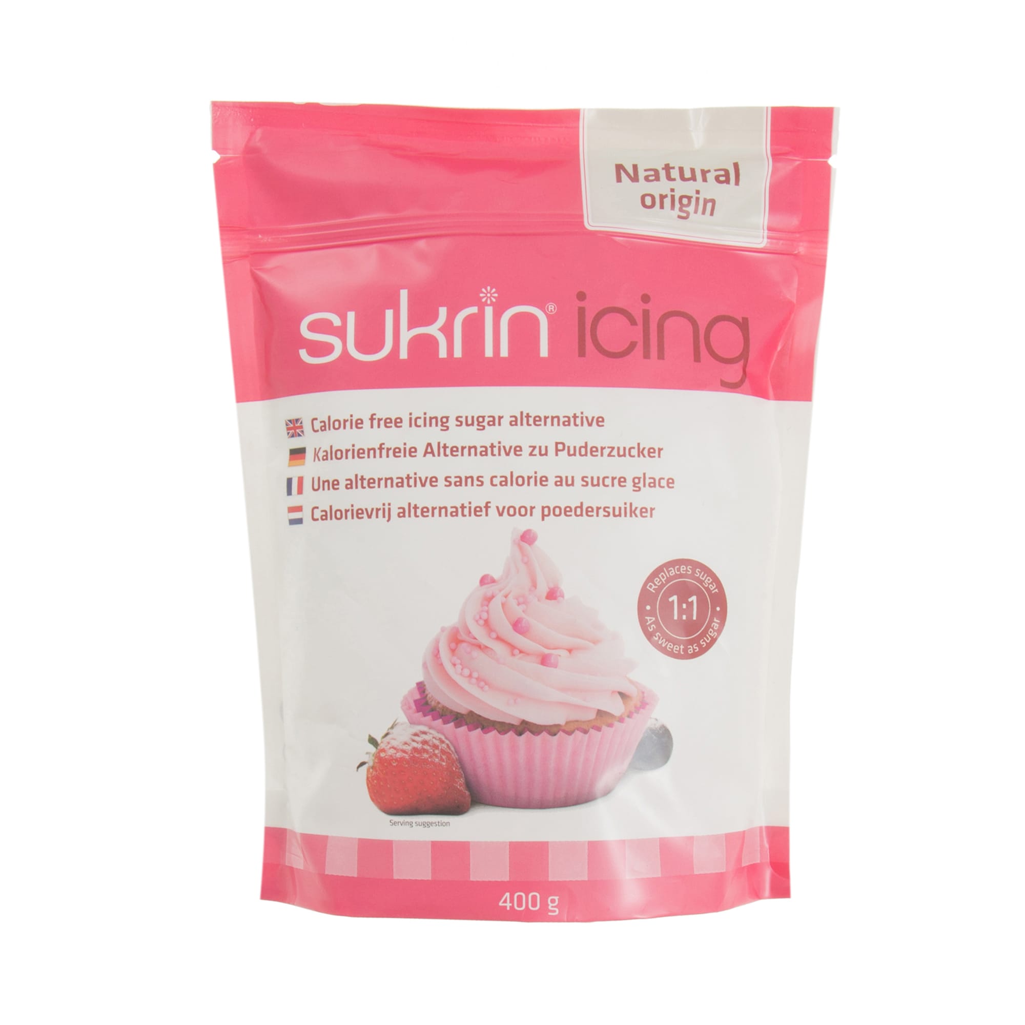 1 κουταλιά Sukrin Icing ισοδυναμεί με 1 κουταλιά κανονικής ζάχαρης (1:1).
